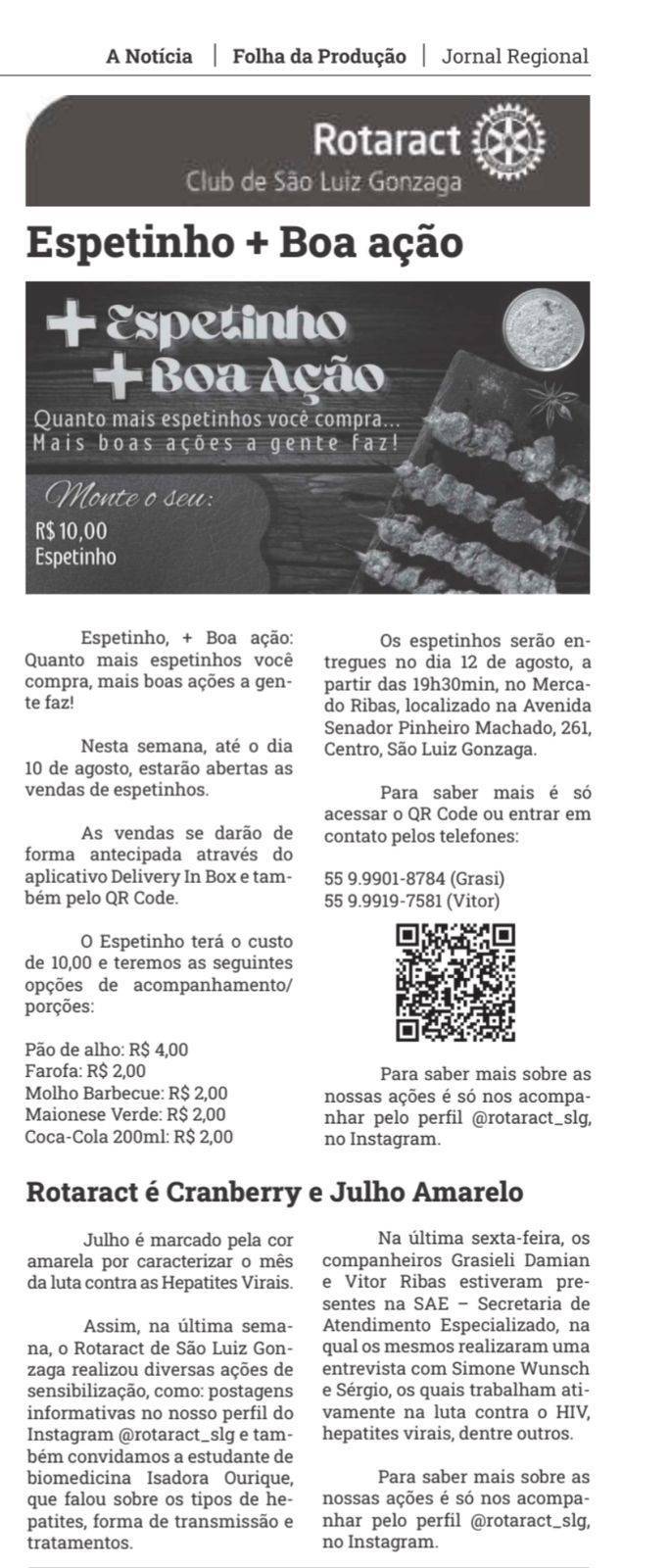 Matéria 2: Rotaract é Cranberry e JULHO AMARELO