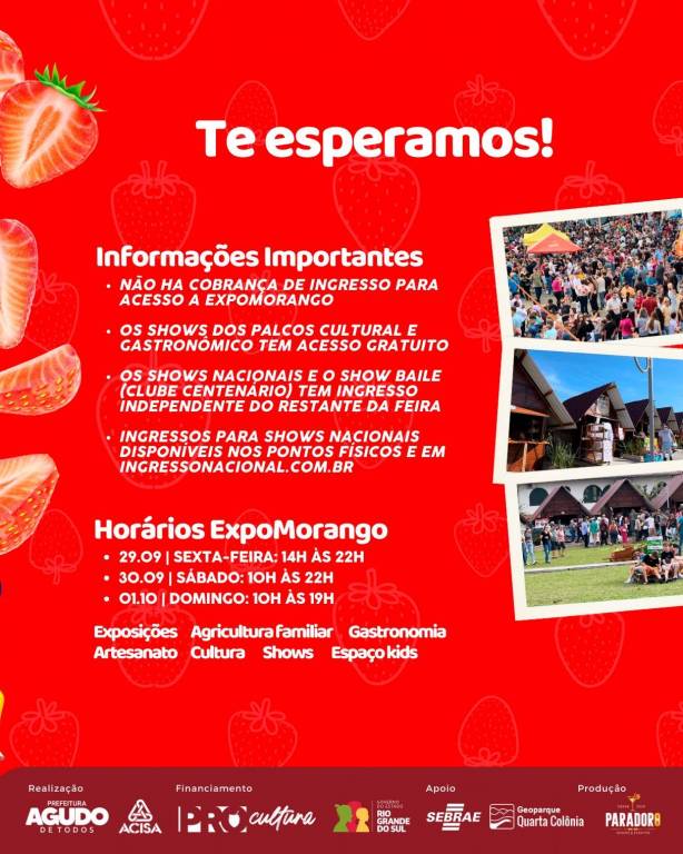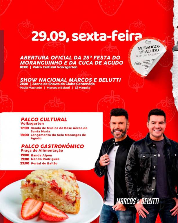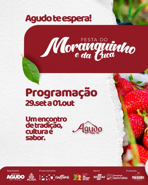 Rotary Club de Agudo convida para a Festa do Moranguinho e da Cuca - 29/09/2023 a 01/10/2023 - Agudo/RS