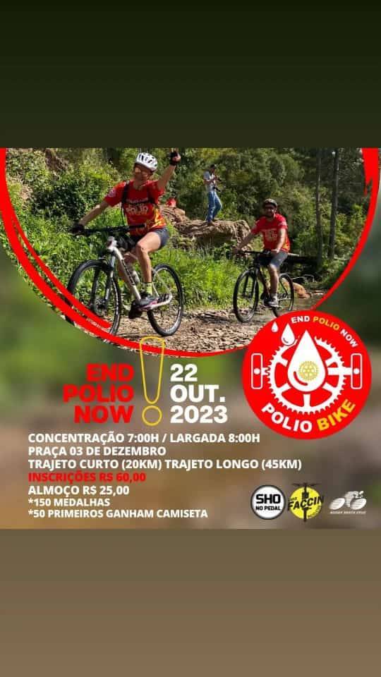 Estão abertas as inscrições para a terceira edição do Pólio bike, convide sua família, seus amigos e venha pedalar conosco, todos pedalando pelo fim da poliomielite.