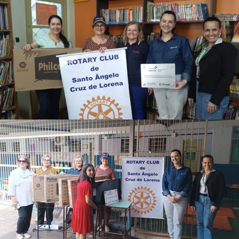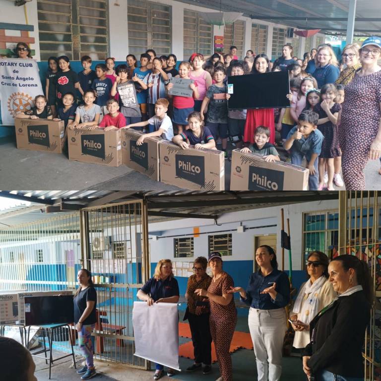 Dia 22 de setembro, o Rotary Clube de Santo Angelo Cruz de Lorena, através de Projeto junto ao Fundo Social Sicredi União RS, contemplou a Escola Antônio Manoel, no Bairro Indubras, em Sto Ângelo com 5 TVs de 32 pol Philco. Nnesta escola frequentam 236 alunos.