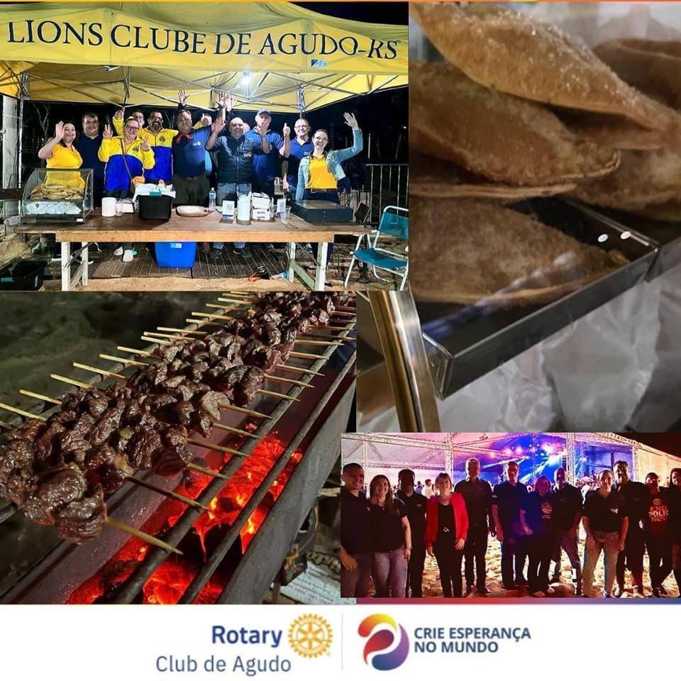 Rotary Club de Agudo e Lions Club de Agudo, engajados na comercialização de lanches, nas três noites de shows no Clube Centenário em Agudo, através da 25ª Festa do Moranguinho e da Cuca. Evento tem como objetivo, angariar recursos para o desenvolvimento de projetos para toda comunidade Agudense!