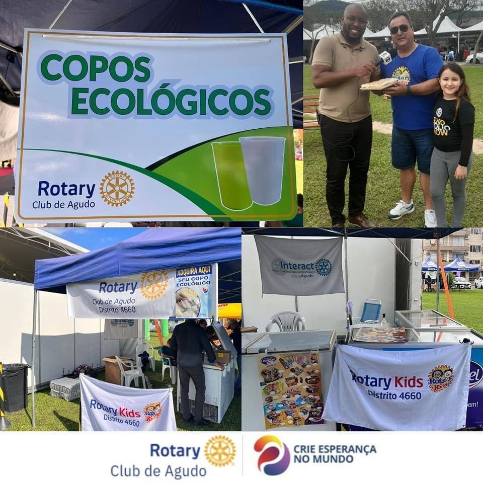 O Rotary Club de Agudo participou de seleção pública municipal para comercializar copos ecológicos, com o objetivo de reduzir impactos no meio ambiente ao reutilizar os copos para consumo das bebidas vendidas na 25ª Festa do Moranguinho e da Cuca, permitindo assim, contribuir com a natureza para diminuir a quantidade de lixo no evento. Cuide a Natureza!!! Crie esperança no mundo! 🌎