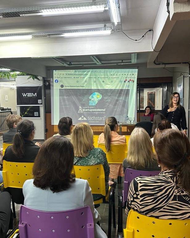 Foi uma noite de novos aprendizados, com a presença de Rodrigo Bayer Medeiros que falou da sua experiência no Startup Weekend em Santo Ângelo no anos de 2019 , apresentou o seu case de sucesso: V4 Company.