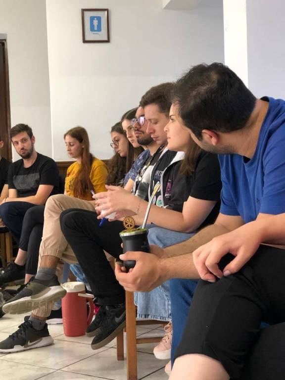 Na ocasião, foi realizada uma dinâmica através de papéis em que cada associado respondeu anonimamente a uma pergunta sobre o tema. Após a escrita, tais papéis foram sorteados, a fim de que as respostas pudessem ser discutidas coletivamente, buscando realizar uma troca de ideias e reflexões. Ademais, somaram-se à capacitação os companheiros do Rotaract Club de Santa Maria. O encontro foi mediado pelas companheiras Victória Leonardi e Cláudia Scaramussa, profissionais de Psicologia, e Luíse Gehrke, graduanda em Medicina.