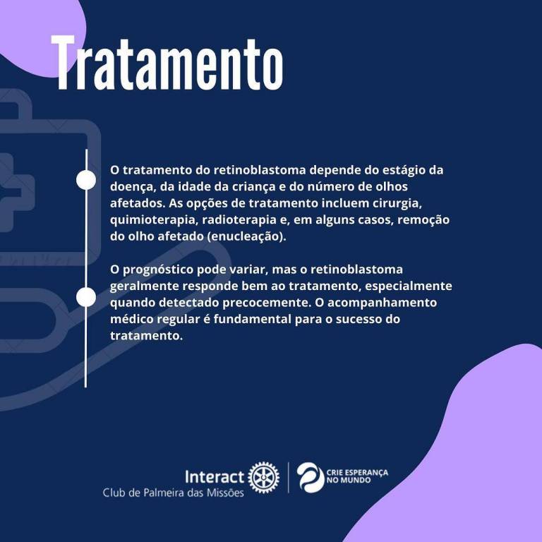 Existem organizações de apoio a pacientes e famílias afetadas pelo retinoblastoma. Você não está sozinho nesta jornada. Procure ajuda e informações.