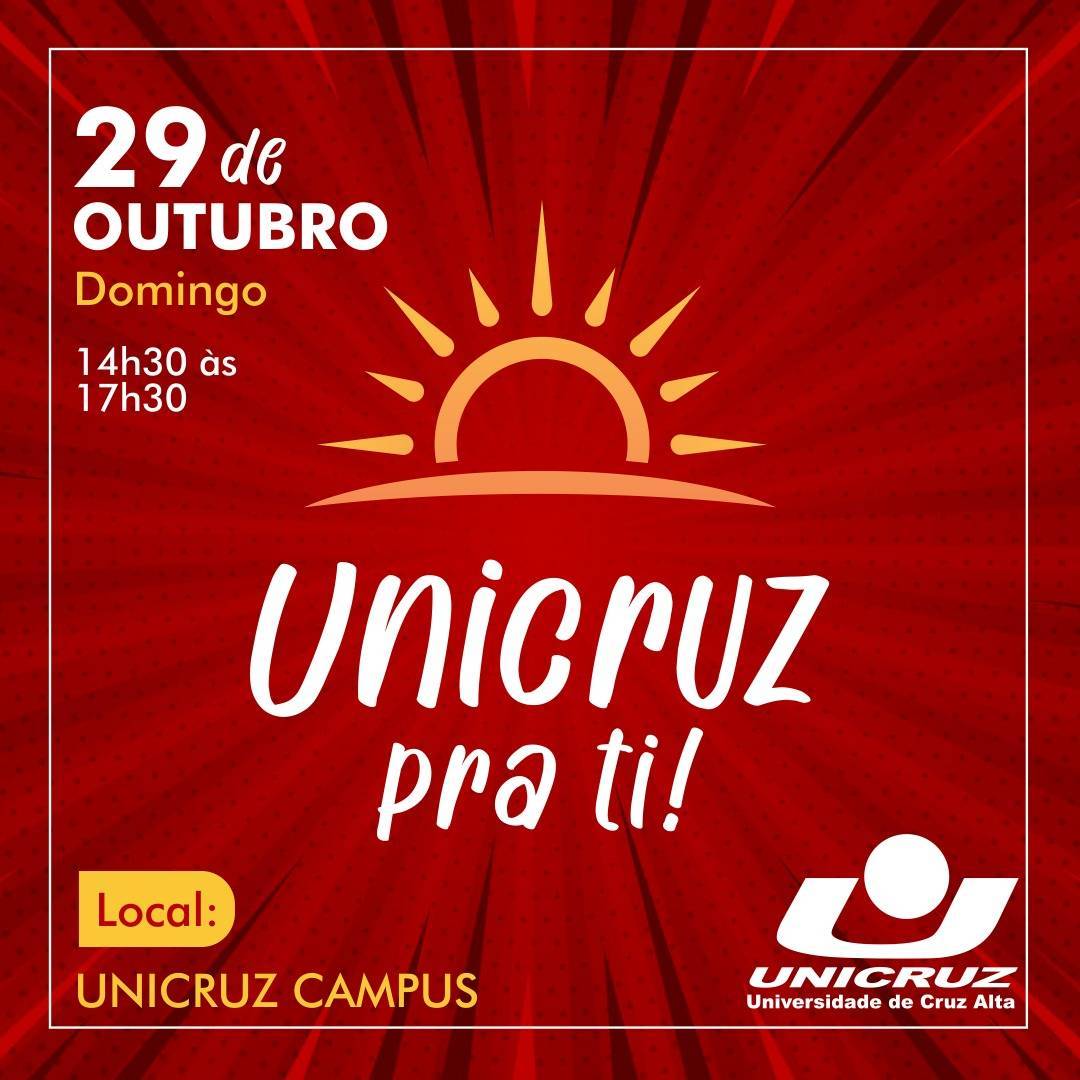 Com atrações super especiais para vivermos uma tarde cheia de alegria e boas energias no nosso querido campus da Unicruz!