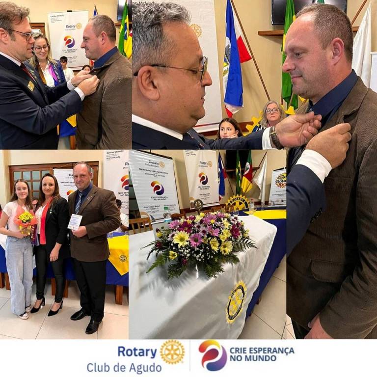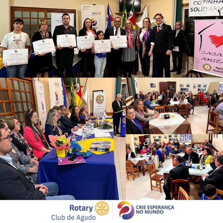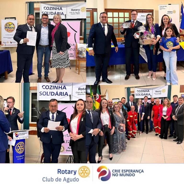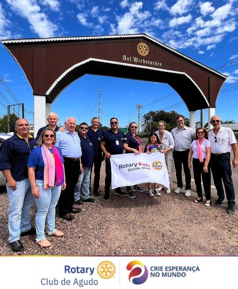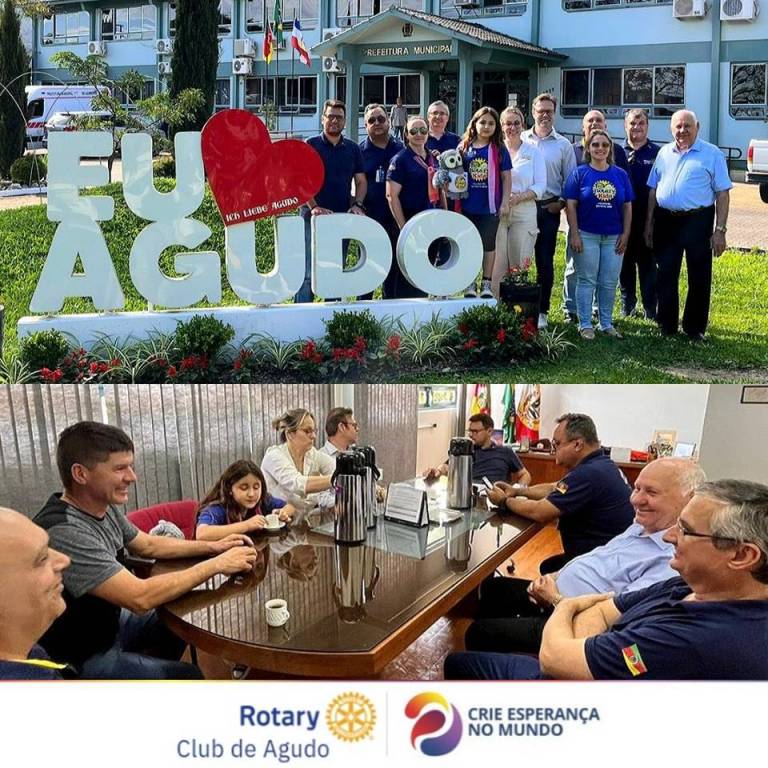 No dia 26/10/2023, o Rotary Club de Agudo recebeu a visita do Governador do Distrito 4.660, Companheiro Alex Knapp Bakof e sua Cônjuge Lisiele Lago Bakof, os quais foram recepcionados pelos Rotarianos no Pórtico de entrada da cidade, com intensa programação à tarde, realizando visitações à APAE, Bombeiros Voluntários, Prefeitura Municipal, Rua Paul Harris, Volksgarten, onde estão as réplicas dos dinossauros mais antigos do mundo registrados nas rochas agudenses. À noite, realizou-se a reunião festiva do Rotary Club de Agudo no Restaurante Schüller, com a presença da Governadoria, visitantes do Rotary Club de Sobradinho, Rotary Club de Paraíso do Sul representado por sua Governadora 2024/2025 Companheira Patrícia Parreira, Prefeito Municipal de Agudo Companheiro Luís Henrique Kittel, Casa da Amizade, Interact e Rotary Kids, rotarianos e familiares, ocasião em que tomou posse o novo membro Companheiro Everaldo Guse, como também foram prestadas diversas homenagens, tanto pelo Distrito 4.660, como também pelo RC Agudo, momento de imensa emoção que marca a história de união e força do Rotary Club de Agudo, com ações transformadoras na sociedade. #CrieEsperançaNoMundo