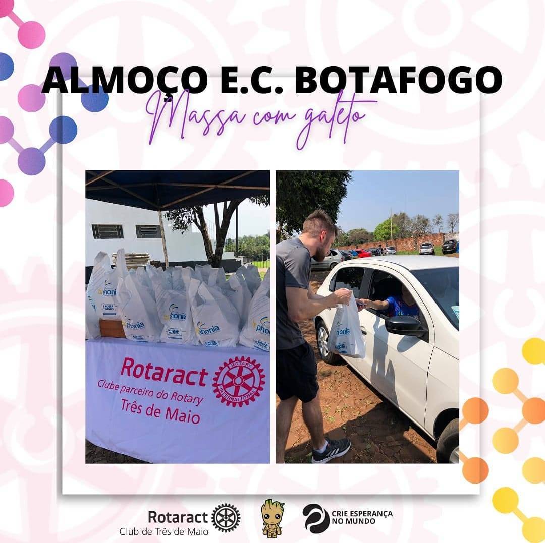 Neste último sábado, dia 23 de setembro, o Rotaract Club de Três de Maio esteve auxiliando o @botafogoec e @botafogoescolinha no preparo um delicioso almoço: Massa com Galeto. 🍗🍝