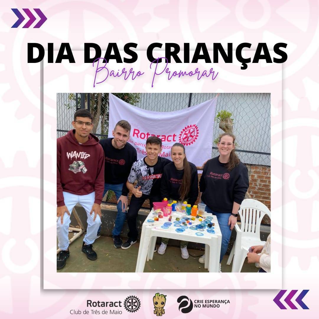 Criança é sinônimo de alegria, e assim foi a tarde do último dia 12 de outubro. O Rotaract Três de Maio esteve presente no evento de celebração que ocorreu no bairro Promorar, uma tarde repleta de sorrisos e diversão, onde os pequenos se aventuraram nos brinquedos infláveis e exploraram a criatividade com as pinturas de rosto. Agradecemos também o @ic_independencia pela parceria, auxiliando nas atividades desenvolvidas 💖🎨🎡🤸🏼♂️