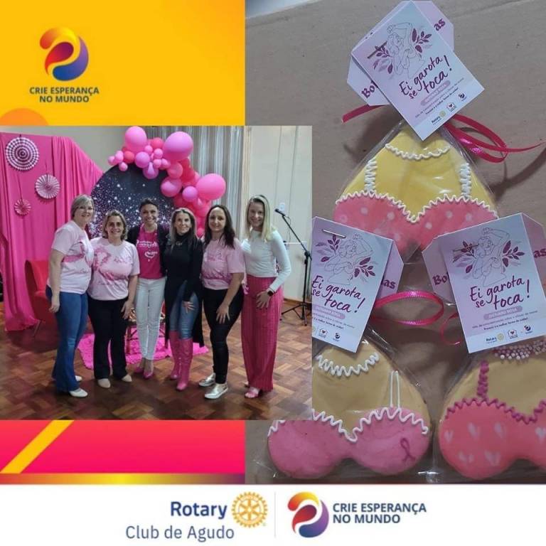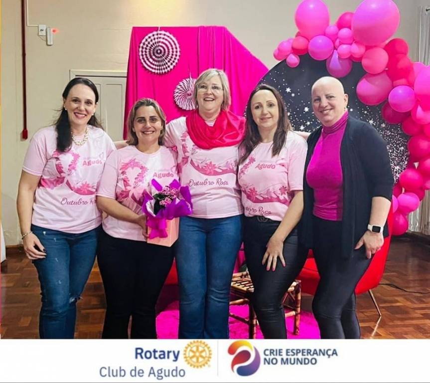 Rotary club de Agudo, realizou no dia 28/10/2023, palestra e roda de conversa sobre a conscientização e prevenção do câncer de mama, com palestra da nutricionista Daniela Prochnoe e da enfermeira Cleonice Soares de Deus, bem como o depoimento da companheira Lisane que falou de sua experiência e Glória De Pellegrin sobre auto estima e valorização feminina ,evento alusivo ao mês outubro rosa "Ei Garota, Se Toca!", com realização de sorteio de brindes o evento foi finalizado com um delicioso Coffee Break.