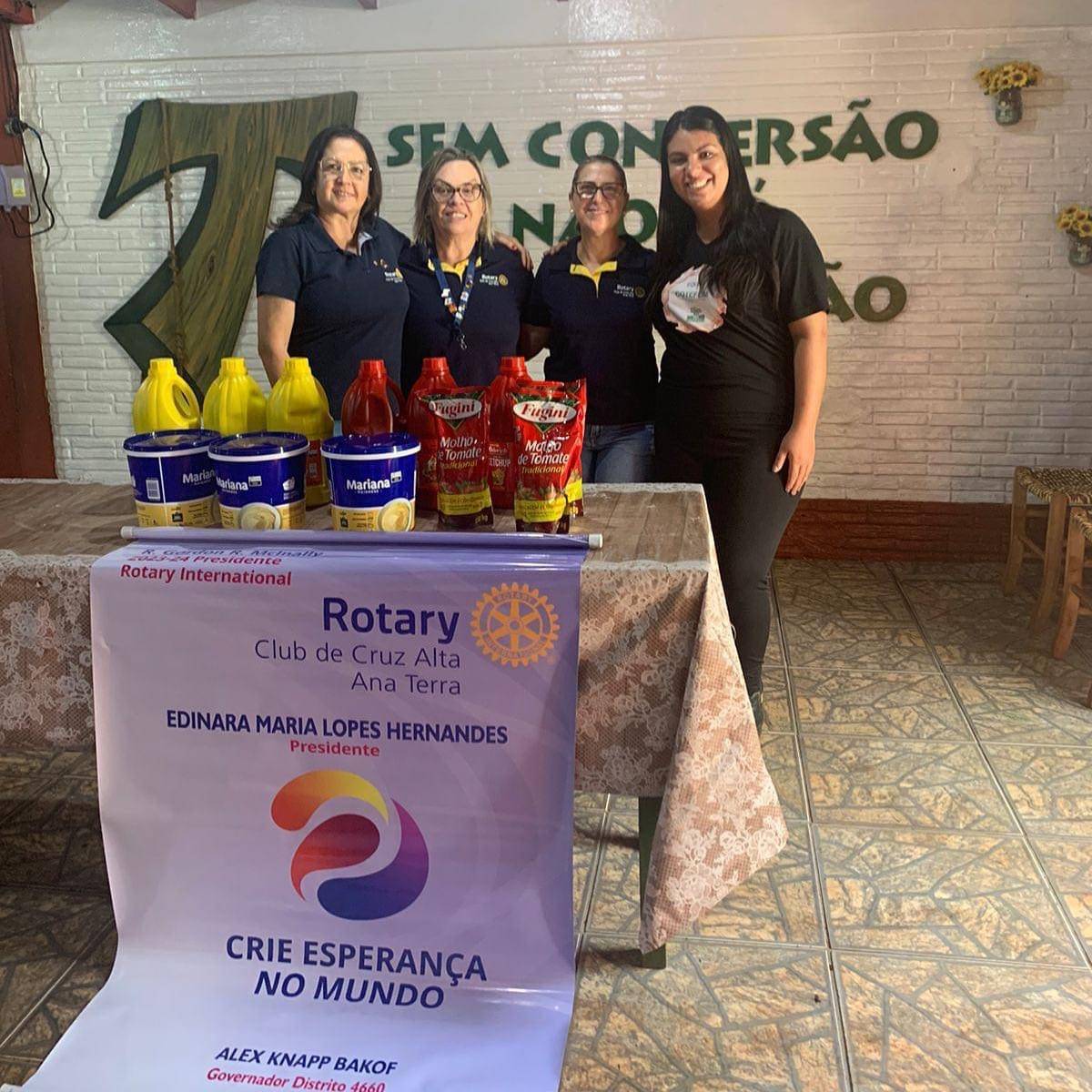 A presidente Edinara juntamente com as companheiras Lilian e Vera representaram o clube nessa doação.