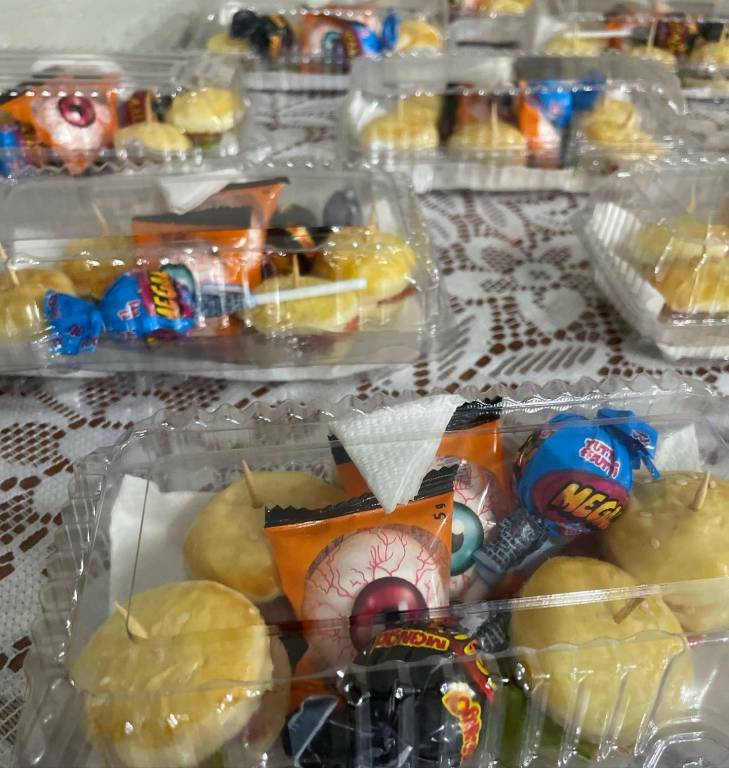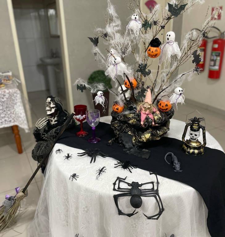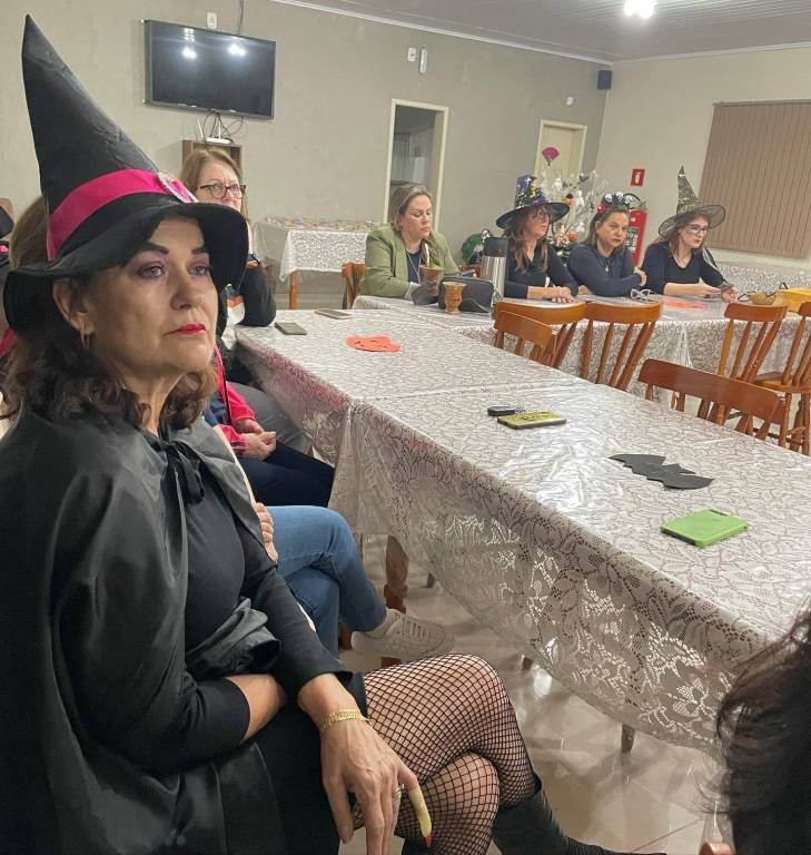 Ao final as companheiras Simone, Vera, Marilda e Neiva, responsáveis pelo companheirismo, serviram sanduichinhos e doçuras alusivas ao halloween para as bruxinhas do Ana Terra!