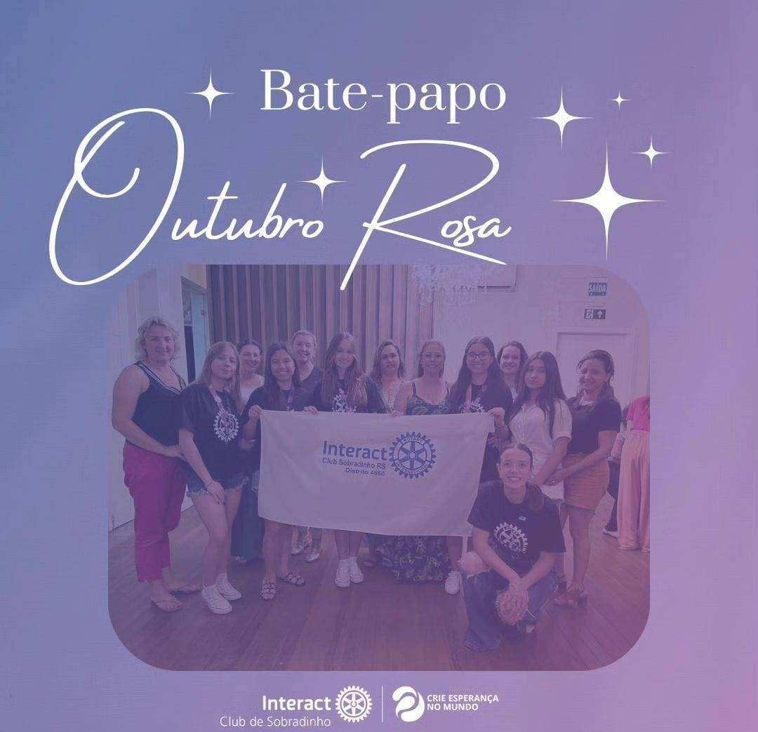 no dia 07 de novembri tivemos um bate-papo com as mães dos interactianos sobre o outubro rosa. gostariamos de agradecer muito a palestrante e enfermeira paola scotta por todo o conhecimento compartilhado com as mulheres presentes. agradecemos também a fala sobre autoestima e amostra dos produtos mary kay com indiara galvao, dienifer lucas e ana elisa rech e por fim agradecemos a presença das mães, rotarianas, a liga de sobradinho e a casa da vovo por ceder o espaço.