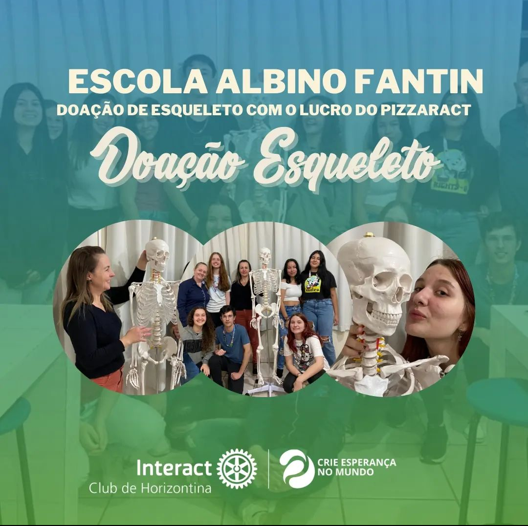 No dia 05 de outubro realizamos a entrega de um esqueleto para a escola Albino Fantin. A doação foi realizada com o dinheiro arrecadado com o projeto financeiro, Pizzaract.
