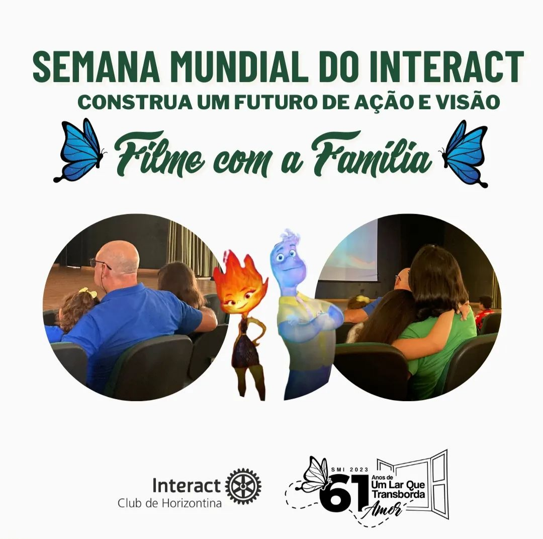 O segundo dia da Semana Mundial do Interact aborda o lema "Construa um Futuro com Ação e Visão". Para a realização do projeto, convidamos a Família Rotaria de Horizontina para que participasse da Sessão de Filme com a Família.