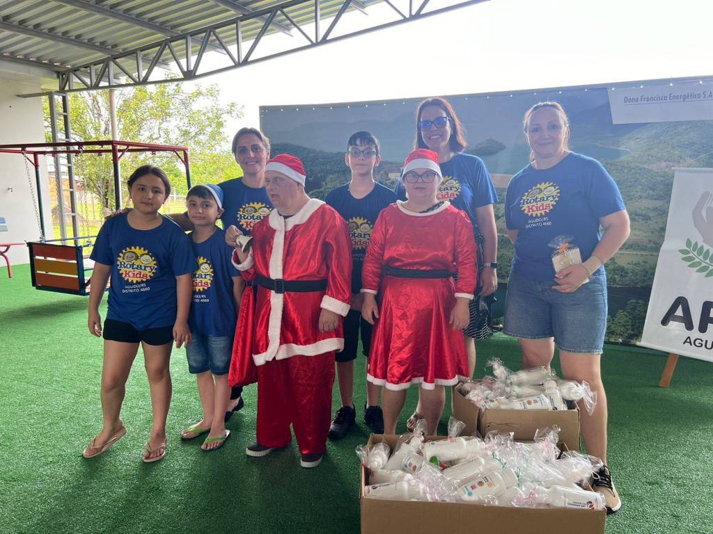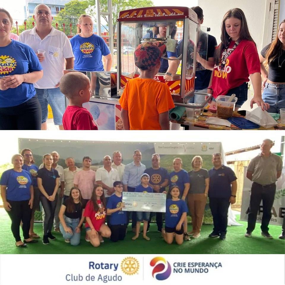 A APAE de Agudo, em parceria com a empresa Dona Francisca Energética, inauguraram o espaço Revitaliza, com a cobertura e piso do pátio da instituição. Na mesma ocasião, o Rotary Club de Agudo fez a doação de R$ 5.000,00 à APAE para o desenvolvimento das suas atividades e projetos fundamentais para promover a melhoria da qualidade de vida das pessoas com necessidades especiais, buscando assegurar-lhes o pleno exercício da cidadania. O Carrinho de Pipoca e Algodão Doce fez a alegria dos presentes neste momento especial, com o brilhante apoio da Sr.ª Renete, auxiliada pelo Interact e Rotary Kids, que também fizeram a entrega de presentes aos alunos da instituição. Parabéns APAE!!! O Rotary Club de Agudo criando esperança no mundo!!!