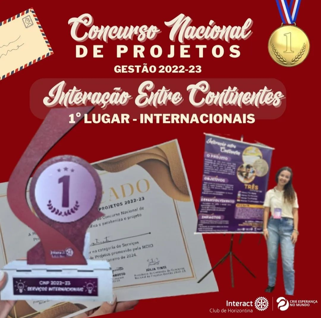 O Concurso Nacional de Projetos da gestão da Imaginação ocorreu na COMIC Permita-se Sonhar, em Uberaba (MG). Estivemos concorrendo na categoria Serviços Internacionais com o projeto Interações Entre Continentes. Representado pela nossa presidente Georgia Simionato, o projeto conquistou o PRIMEIRO LUGAR🥇