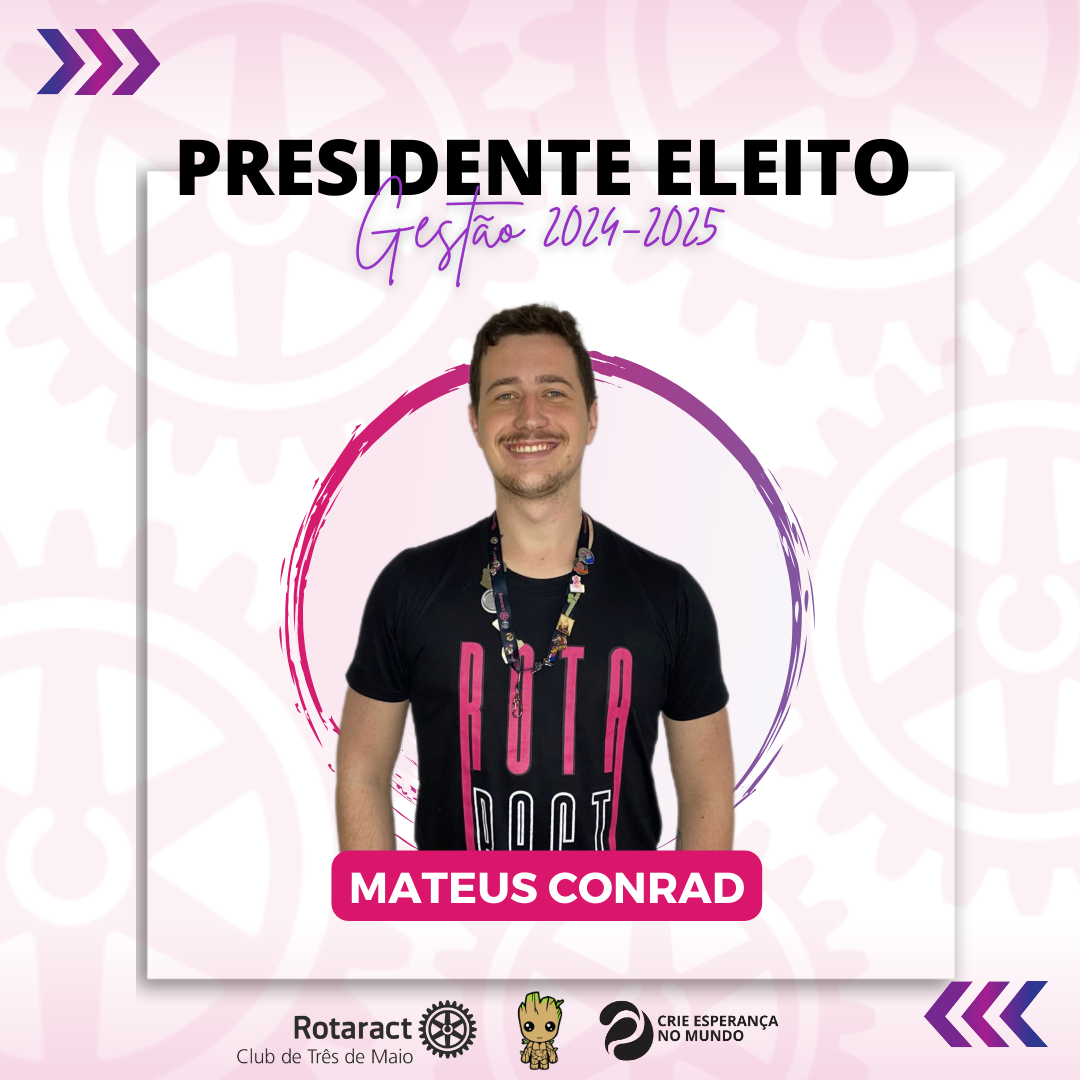 Com muita alegria, anunciamos o PRESIDENTE ELEITO DA GESTÃO 2024-2025 do Roratact Club de Três de Maio: companheiro Mateus Conrad @mateus.conrad.