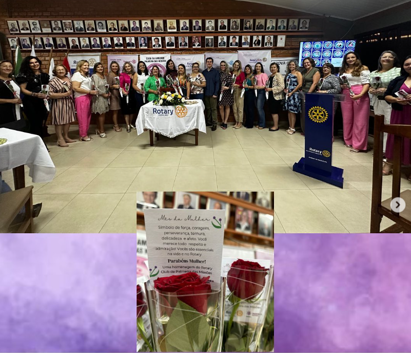 Em noite festiva no dia 30 de Março 2023, o RC de Palmeira das Missões, presidido por Eduardo Danieli, prestou homenagem às mulheres que fazem parte da Família rotária. Foi destacado a importância que tem a mulher em ROTARY, e foi oferecido uma rosa em gratidão pelo trabalho que realizam no voluntariado.