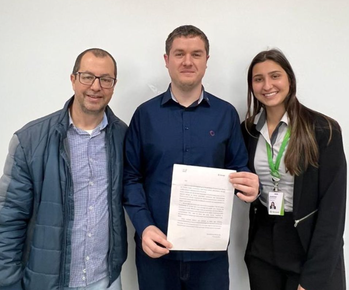 Companheiro presidente gestão 22/23 Eduardo Danieli, juntamente com companheiro Libano Jr, presentes na tarde do dia 04 de julho no Sicredi onde foi apresentado os resultados do fundo social, o qual o clube foi contemplado mais um ano com o recurso para o banco ortopédico do clube, para a aquisição de mais equipamentos.