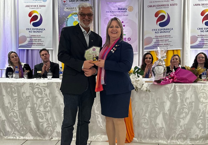 Na noite do dia 06 de julho durante a Solenidade de Posse do Conselho Diretor da Gestão 2023/24 da Família Rotária, o Companheiro Milton Taborda recebeu das mãos da Governadora Geni Zandoná Gehlen 2021/22, em nome do Governador Jorge Carneiro o Troféu pelos Serviços prestados como Protocolo do Distrito durante a Gestão 2022/23.