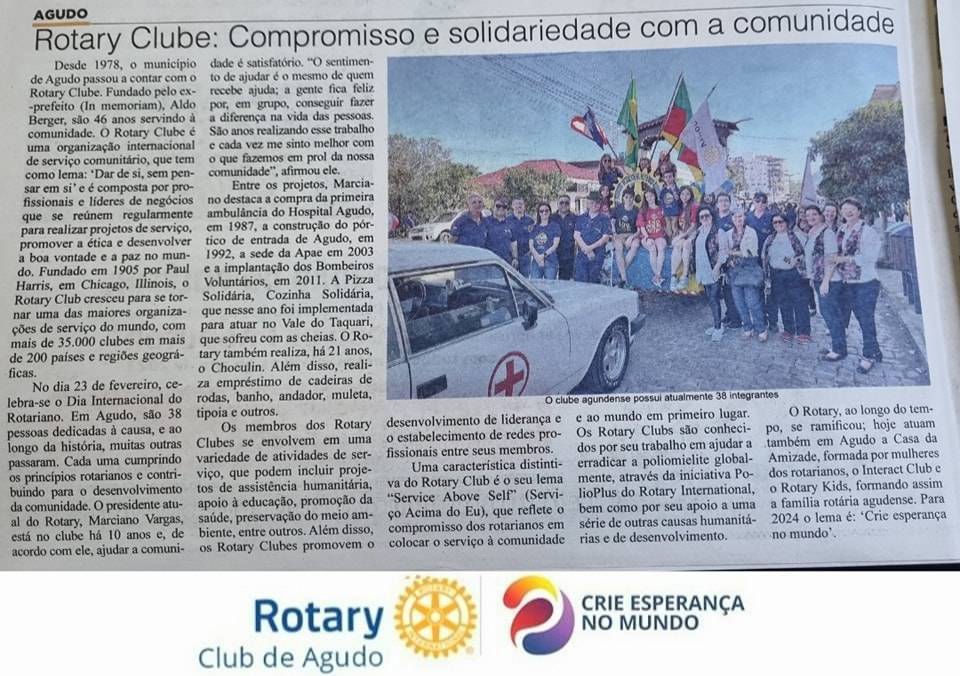 O Jornal Cidades do Vale, veio a Agudo fazer uma matéria sobre o dia do Rotariano, com o Rotary Club de Agudo.