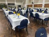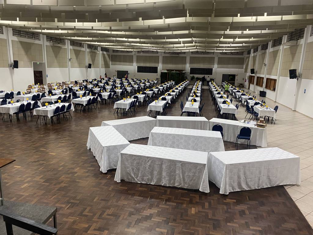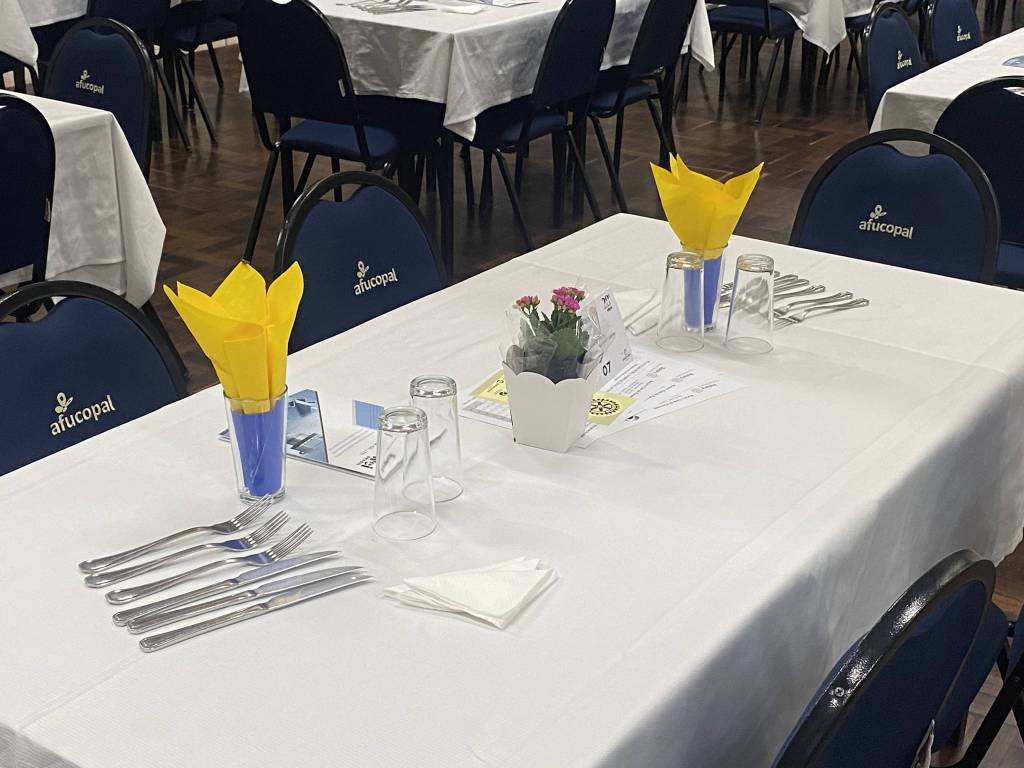 Foram preparadas e servidas, pela APAE em torno de 640 jantas. A Casa da Amizade, como de costume, preparou e serviu a sobremesa. Cabendo ao Rotaract servir as bebidas.