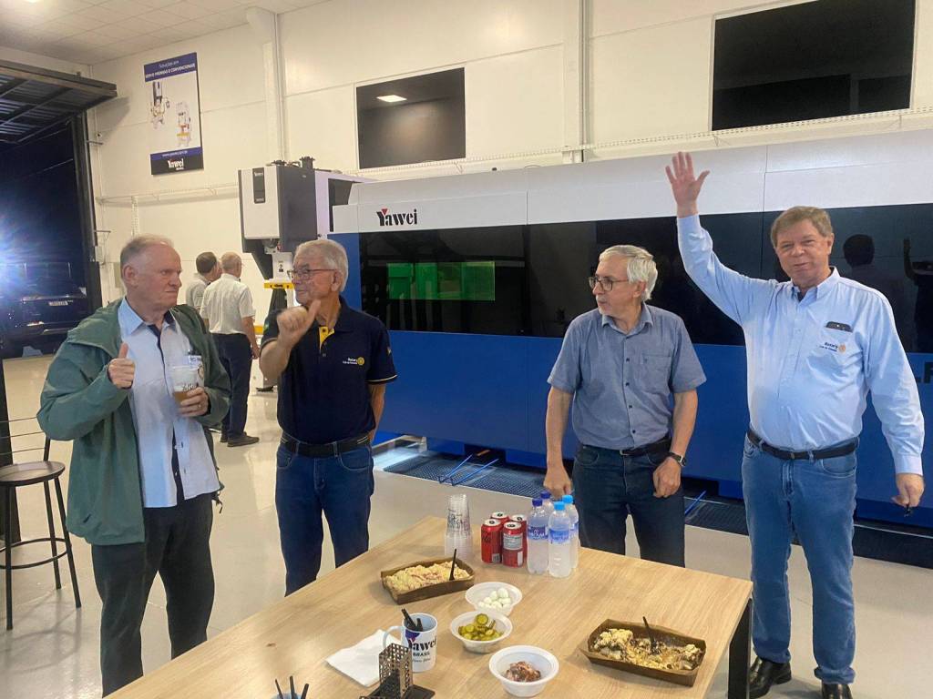 Fugindo do habitual, a reunião do Rotary Club de Panambi que aconteceu na segunda-feira passada, dia 15 de abril, ocorreu em um formato um pouquinho diferente. Em um belo ambiente, junto ao Show Room da empresa @YaweiBrasil.com em Panambi/RS, os companheiros, tiveram a oportunidade de conhecer algumas máquinas operatrizes do portfólio da empresa, comercializadas e fornecidas pela mesma na América do Sul.