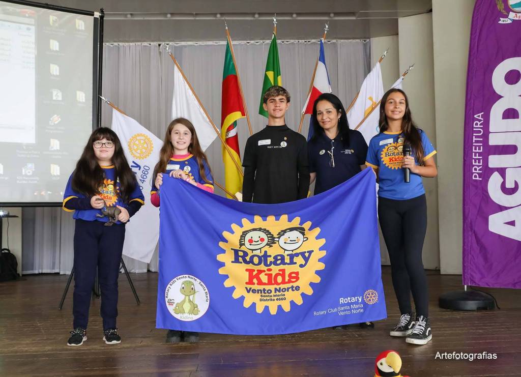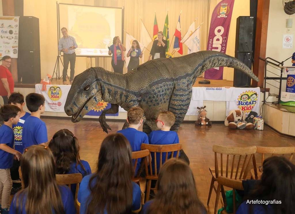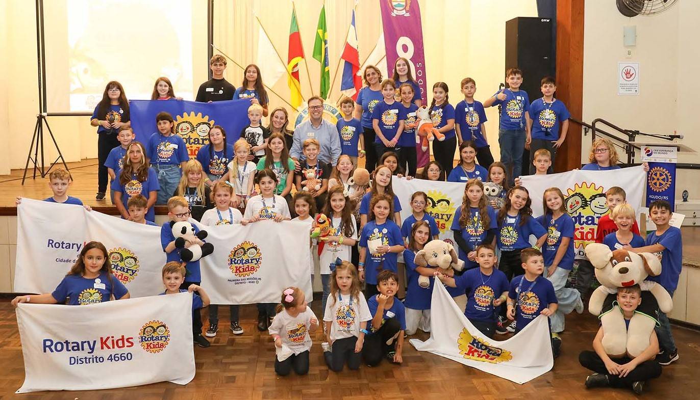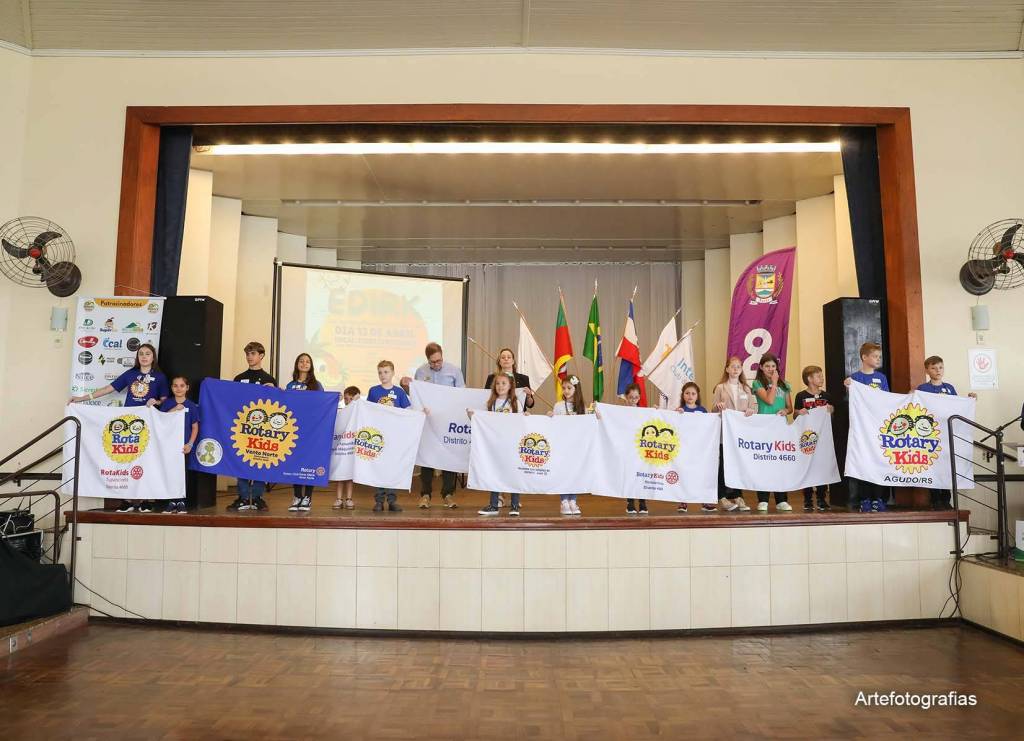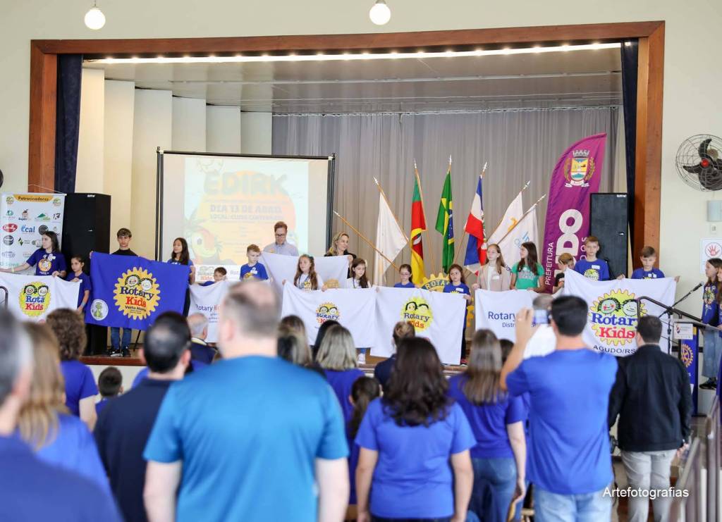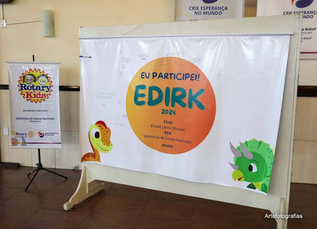 No dia 13/04/2024, a cidade de Agudo foi sede do III Encontro Distrital do Rotary Kids do Distrito 4.660 (EDIRK) da Gestão 2023/2024, com a participação dos clubes de Rotary Kids de Agudo, Frederico Westphalen, Horizontina, Palmeira das Missões, Panambi, Santa Maria e Tupanciretã. Com o tema “Agudo, Berço dos Dinossauros”, foram realizadas oficinas temáticas durante todo o dia sob a coordenação dos rotarianos, com o apoio do Interact Club de Agudo, como caça aos fósseis, confecção de chaveiros, bolachas e a pintura de rodas rotárias para a entrega ao amigo secreto. Momento de extrema alegria para os Kidianos foi a presença dos Mascotes da cidade de Agudo, Dinos Agussauro e Agudino, como também do Dino Cepo. Cafés coloniais e almoço organizados pelo Rotary Club de Agudo e Casa da Amizade, com o auxílio dos pais dos Kidianos, foram oferecidos aos visitantes, prestigiando a gastronomia alemã. Após o encerramento do EDIRK, realizou-se o ACAMPAKIDS no CTG Sentinela do Jacuí, com a realização de diversas atividades que tornaram o momento especial para todos. O Rotary Kids de Agudo, com o apoio do Rotary Club de Agudo, sob o lema Crie Esperança no Mundo, agradece imensamente a presença de todos nesta EDIRK 2024, evento que ficará para sempre marcado nas nossas vidas. Gratidão!!!