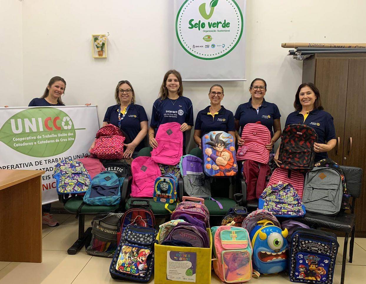 Na tarde desta segunda-feira (19/02), o RC de Cruz Alta Ana Terra em parceria com o Interact Club fizeram a entrega das mochilas oriundas da campanha “Mochila Amiga” que teve como intuito a arrecadação de mochilas novas ou usadas, para serem doadas às crianças, filhos dos associados da UNICCA Cooperativa de Trabalho União dos Catadores e Catadoras de Cruz Alta.