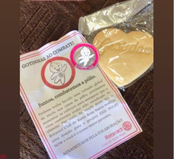 O Rotaract Club de Santa Rosa, engajado na causa End Polio Now, está comercializando PINS com o mascote da campanha, no valor de R$25,00. O valor arrecadando será doado para o Fundo Pólio Plus, que ajuda a levar a vacina contra a Pólio para todas essas crianças.📌