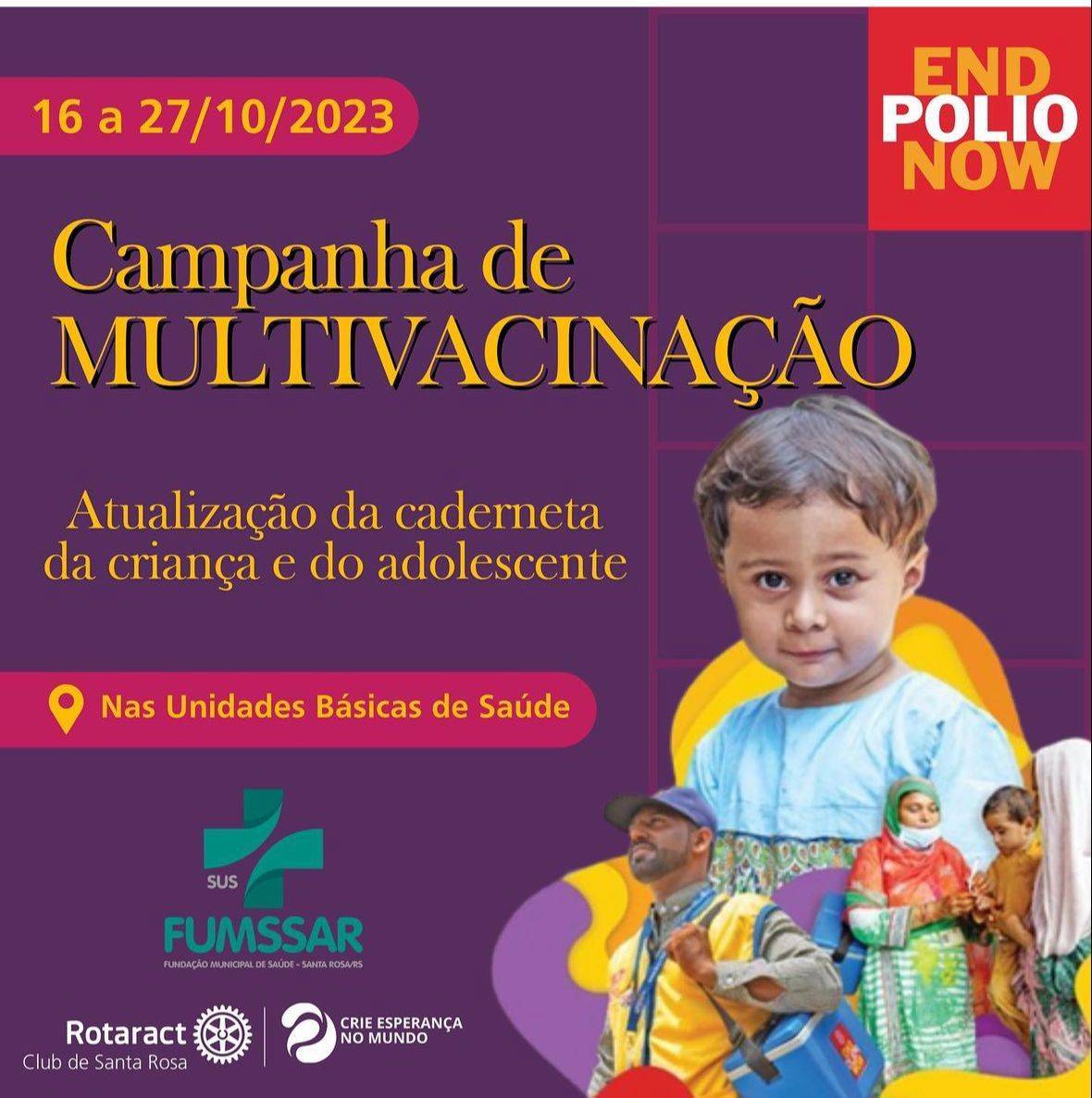 A Fundação Municipal de Saúde de Santa Rosa está realizando a Campanha de Multivacinação entre os dias 16 à 27 de outubro de 2023. A ação faz parte de uma campanha nacional do Ministério da Saúde. 💉🫶🏽