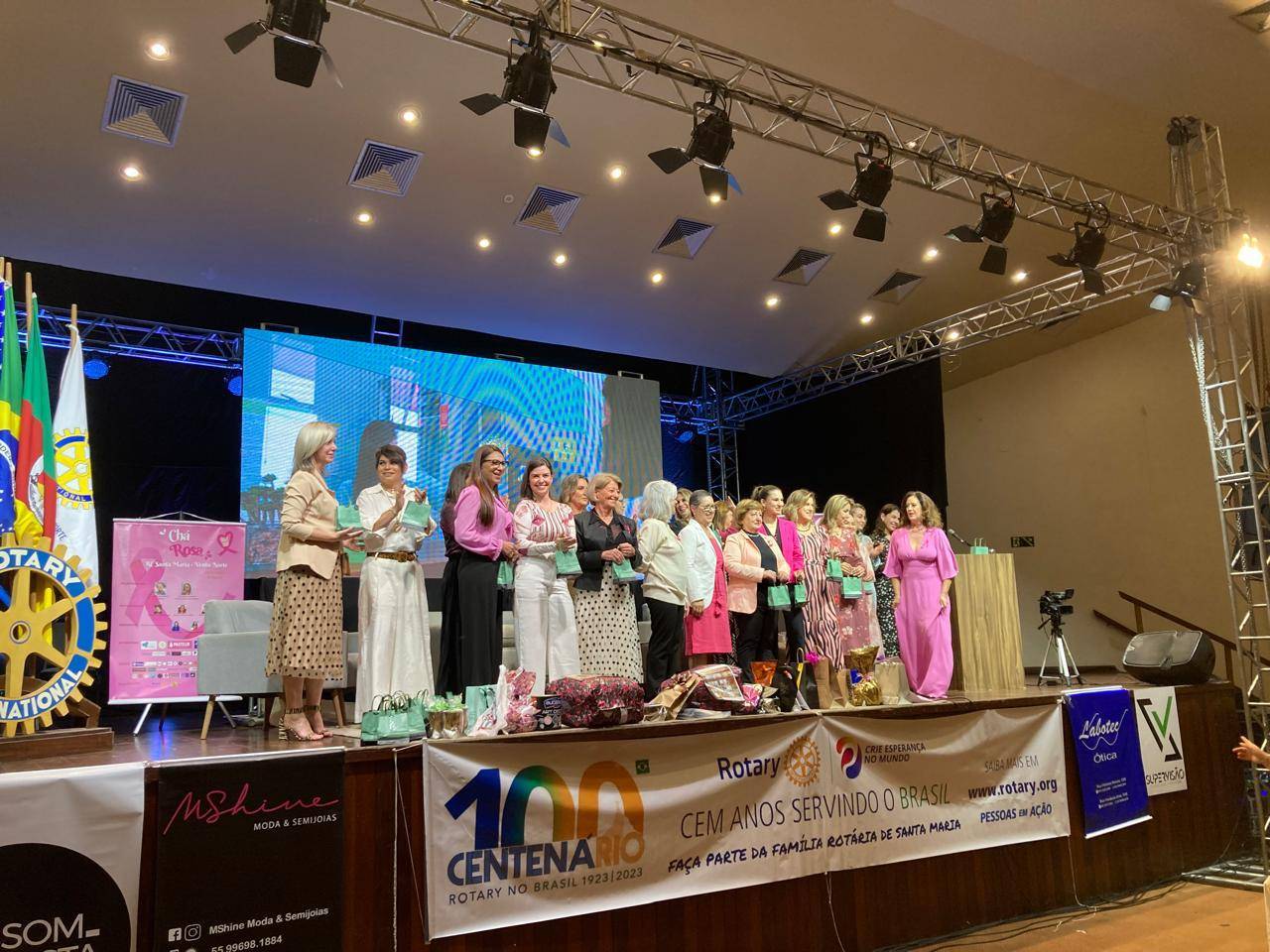 Seguindo a missão da entidade em ser parte das soluções das comunidades onde esteja inserida, o RC Santa Maria - Vento Norte e o Rotary Kids - realizaram o 1º Chá Rosa, que teve como palco o Park Hotel Morotin no dia 19 de outubro. Com a participação superior a 200 pessoas da sociedade Santamariense, o evento abordou o "Outubro Rosa" na forma inicial em uma roda de conversa em forma de depoimentos de pessoas que enfrentaram o câncer de mama, com a mediação do Programa Jogo de Cintura da TV Diário. Participações, ainda, da Dra Érica Cavalheiro - Fisioterapeuta Oncológica e por vídeo conferência, Dra Lully Rocha - Médica Anestesiologista que atualmente realiza tratamento oncológico na cidade de Porto Alegre. O evento teve o objetivo alertar para a prevenção contra a doença e oportunizar um momento de convivência, relata a Presidente Vanderlea Guma Fiorenza.