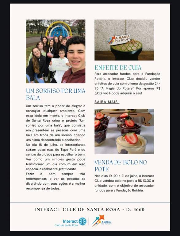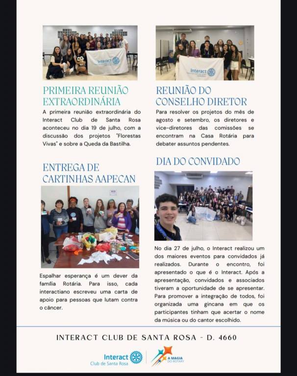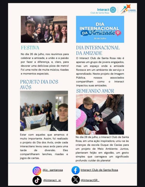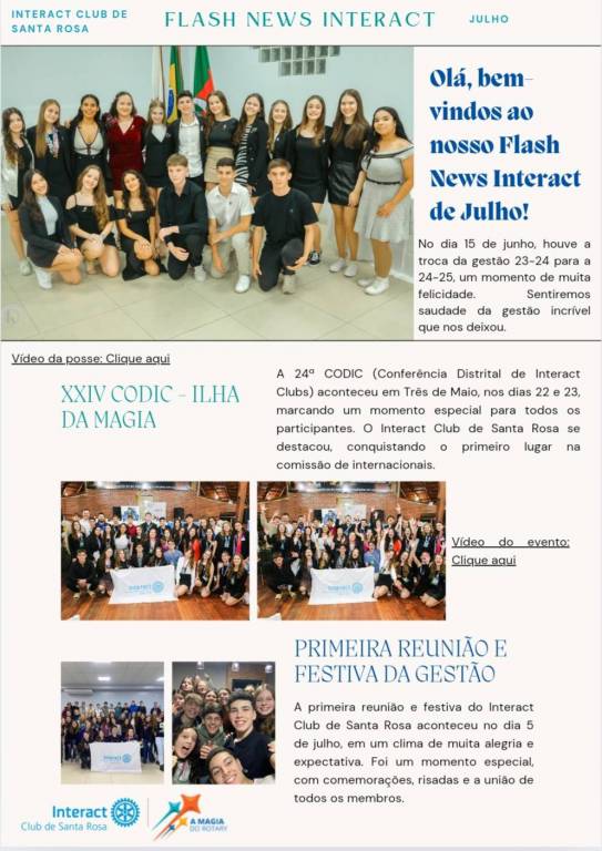 O projeto Flash News surgiu com a ideia de reunir todos os projetos, novidades e eventos em um jornal digital. A primeira edição foi publicada no dia 2 de agosto. Para envolver ainda mais a comunidade e destacar o trabalho do Interact, cada mês uma escola de Santa Rosa receberá um exemplar exclusivo