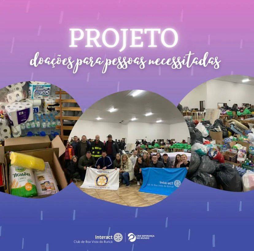 Após esse terrível acontecimento com nossas cidades vizinhas, o Interact Clube de Boa Vista do Buricá juntamente com o Rotary se uniram para arrecadar doações de alimentos, colchões, travesseiros, materiais de limpeza, roupas entre outro itens de extrema necessidade para essas pessoas que acabaram sendo afetadas.