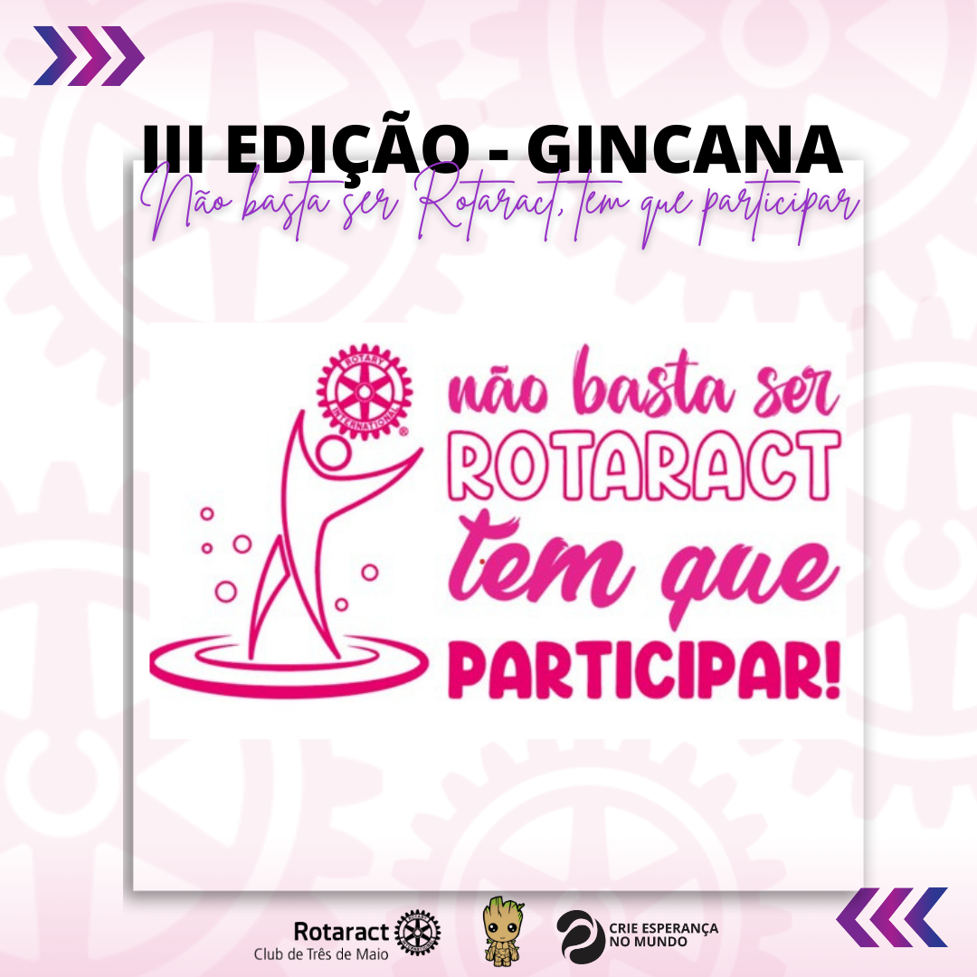 O projeto “III Edição – Não basta ser Rotaract, tem que participar” do Rotaract Club de Três de Maio teve como objetivo principal promover o desenvolvimento de habilidades e autoconhecimento dos associados. Através de uma gincana, tendo diversas atividades, como: treinamento de oratória e primeiros socorros, ações e projetos com a Família Rotária e com a comunidade em si. Também, buscou-se fortalecer os laços de companheirismo, atrair novos membros e aumentar a visibilidade do clube. O projeto ocorreu num período de aproximadamente seis meses, e por fim, os resultados não foram conforme os esperados pela equipe organizadora. Além de muita diversão, houve um breve aumento do quadro associativo e seguidores nas redes sociais e diminuição na frequência real em reunião. Contudo, houve fortalecimento das relações interpessoais e o desenvolvimento de liderança.