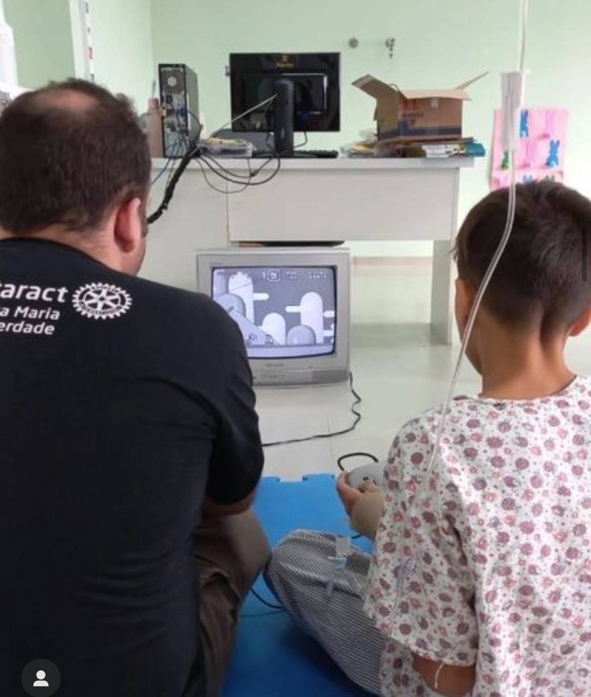 Diante de toda a situação catastrófica que assolou a cidade e o nosso querido estado, acabamos nos resignando de realizar postagens em solidariedade à dor população. Mas decidimos, agora, trazer um pouco da nossa forma de demonstrar afeto a quem precisa. e No longínquo dia 24 de abril, em uma realidade agora distante, estivemos presentes no aniversário de 54 anos no Hospital Universitário de Santa Maria. Foi um momento mágico, de acolhimento às crianças internadas nas unidades pediátricas da instituição. Em parceria com o pessoal do Rotary Clube e Interact Santa Maria Dores, disponibilizamos um Super Nintendo para a Brinquedoteca da Unidade de Internação Pediátrica. Os nossos videogames ajudaram a transformar o ambiente de recreação dos jovens pacientes, contribuindo ao agregar mais diversão a todo o processo de revitalização já implementado no espaço. Essa iniciativa faz parte da nossa proposta de democratização e difusão de uma perspectiva social e acolhedora dos games para todas as comunidades e pessoas que não tem acesso a esse universo. Se você tem uma ideia de aplicação social, entre em contato com a gente e vamos tentar tirá-la do papel!