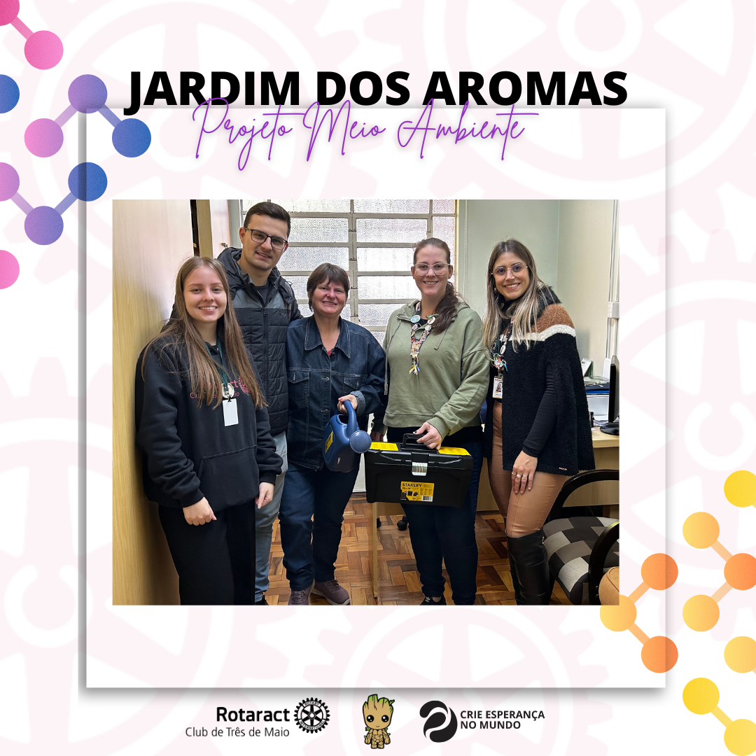 O projeto “Jardim dos Aromas” foi desenvolvido pelo Rotaract Club de Três de Maio na instituição Lar dos Idosos do município três-maiense, onde foi arquitetado e construído um jardim com 06 canteiros, em uma área de 60 m². Na qual os canteiros foram delimitados com tijolos e foi colocado pedra brita para facilitar o acesso ao mesmo. Ainda, foi realizado o preparo do solo com adubação e, posteriormente foi plantado mudas e sementes dos chás: hortelã, cidreira, boldo, camomila, cavalinha, melissa, erva doce, alecrim, guaco e menta e, dos temperos: salsa, cebolinha, manjericão, pimenta, salvia, manjerona, alfazema e alecrim. Ainda, foi ofertado uma maleta com materiais e ferramentas de jardinagem.