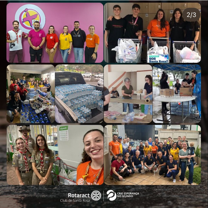 Durante os 4 dias, após as enchentes do nosso município, os companheiros do Rotaract Club de Santa Rosa estiveram presentes no preparo de alimentos e lanches para entregar vítimas das enchentes de Santa Rosa.