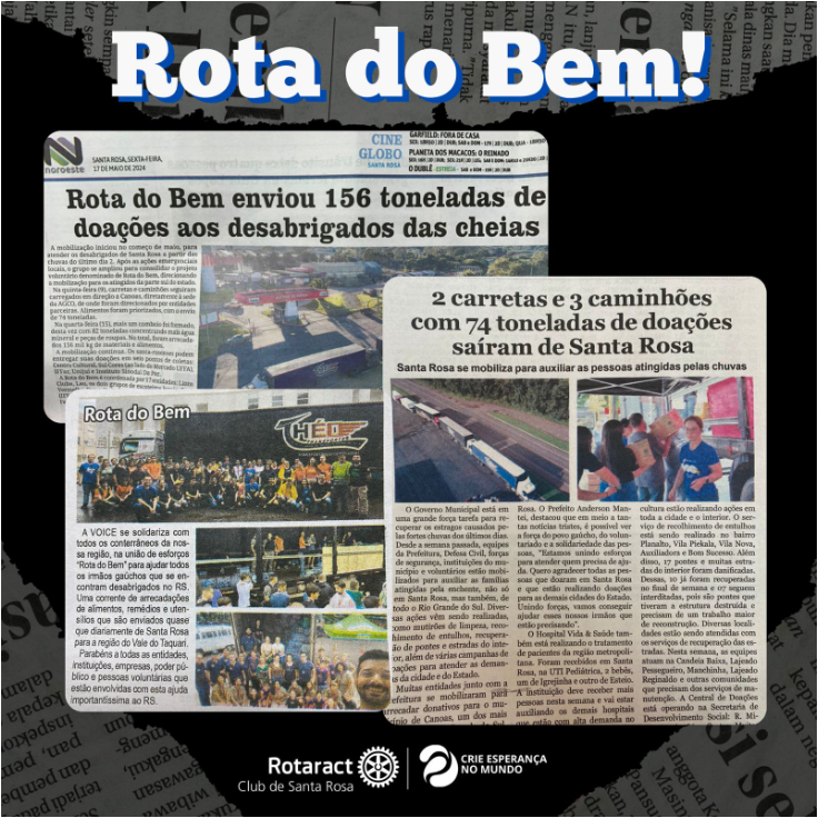 Após as ações emergenciais locais, o grupo se ampliou para consolidar o projeto voluntário denominado de Rota do Bem, direcionando a mobilização para os atingidos da parte sul do estado.