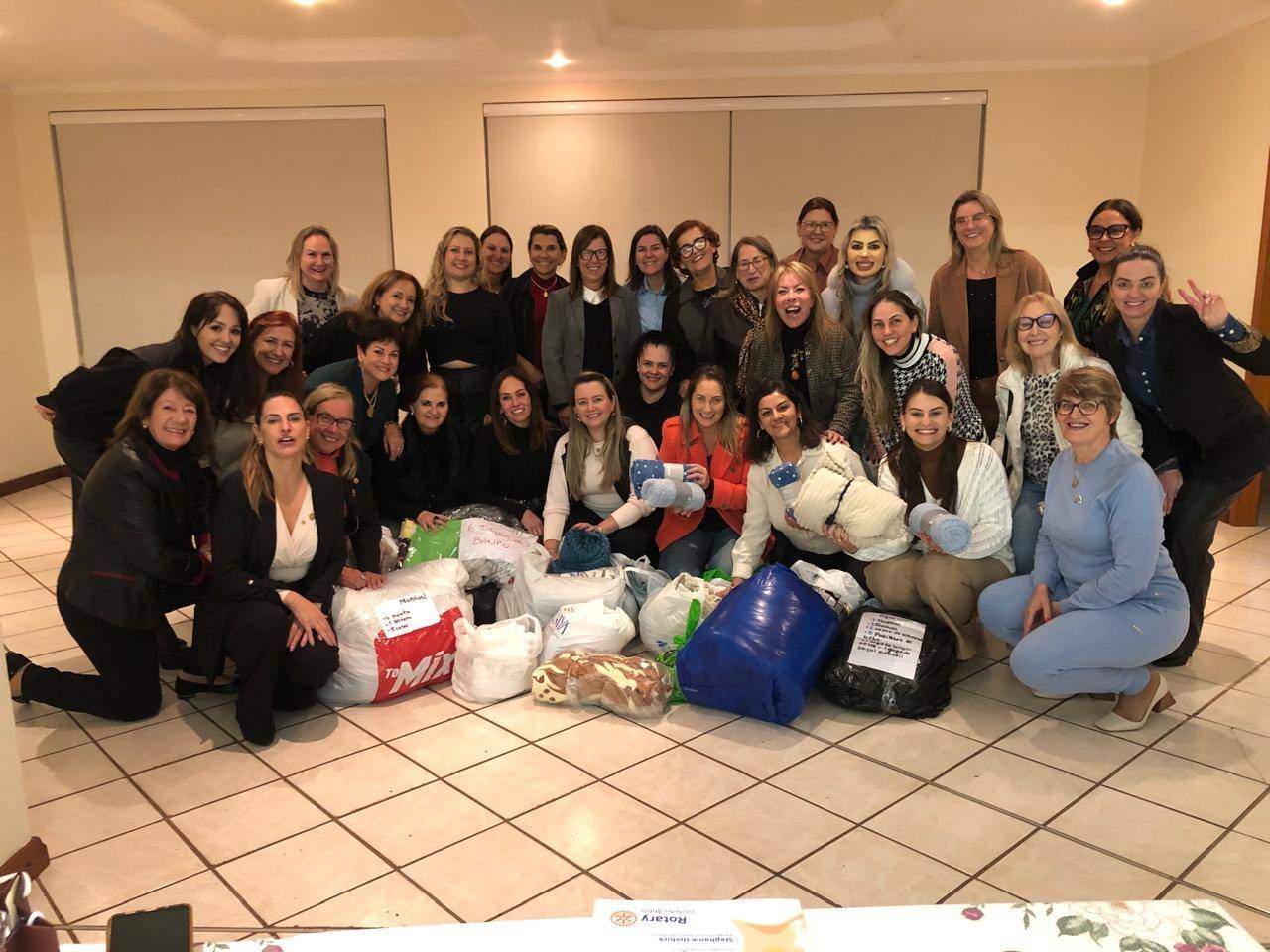 Foi uma noite descontraída com um Bingo divertido e brindes para quem respondesse as questões sobre o Rotary. Além disso foi uma noite de doações de toalhas e cobertas para as vítimas das enchentes. Também tivemos a presença de novas integrante do nosso clube de Rotary, Celoi e Raquel Gubert . A sala estava repleta de mulheres rotarianas.