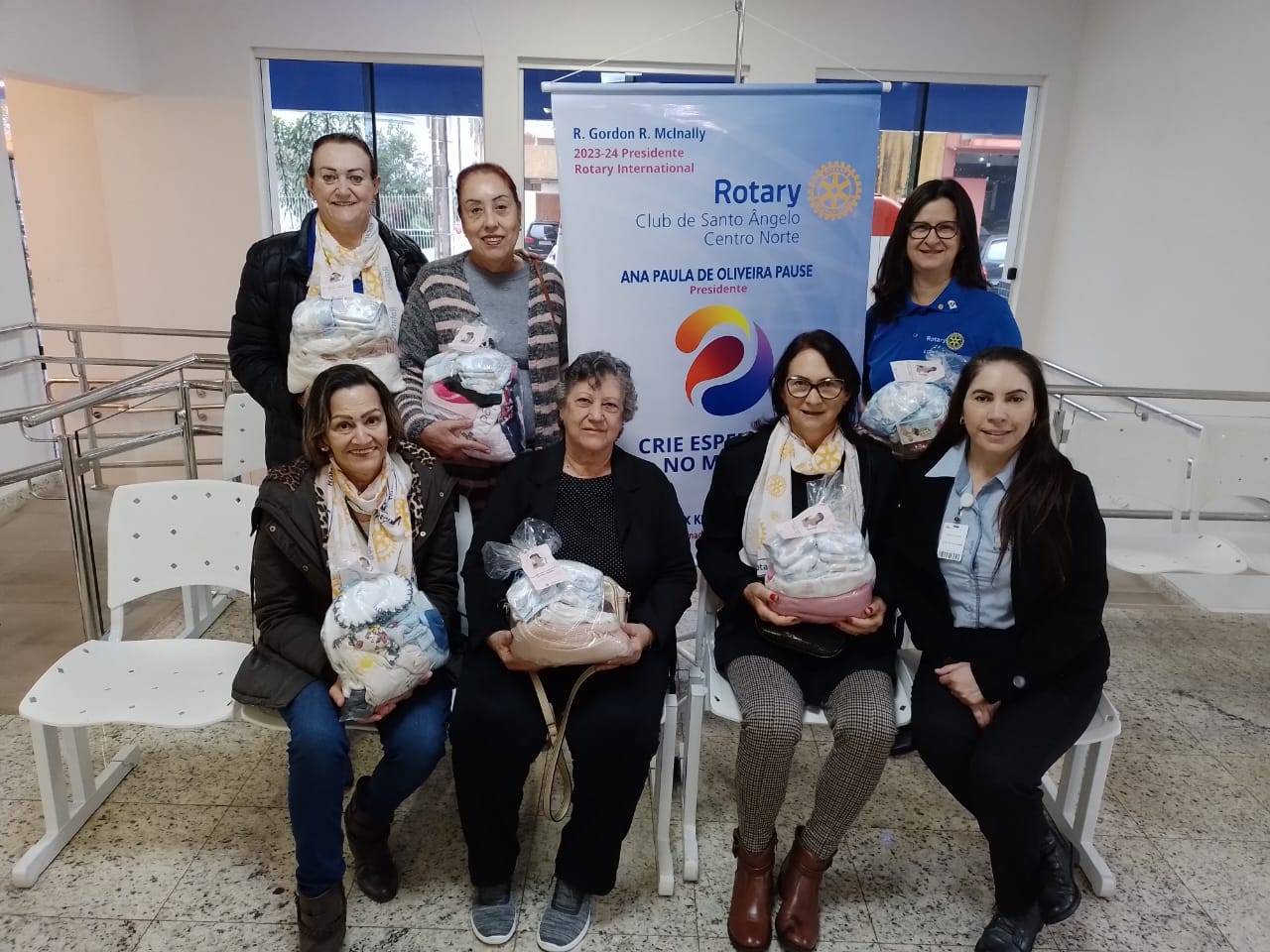 Projeto contínuo há mais de cinco anos em nosso clube, realizamos mais uma edição, no mês de maio. Na oportunidade foram entregues 12 kits de meninos e 12 de meninas, à maternidade do Hospital Regional das Missões, sendo ao total mais de 200 peças em roupas para bebês, contendo ainda fraldas e sabonete. As companheiras seguem engajada na busca e higienização das roupas, bem como, muitas se desafiando a aprender costurar e, fazer chochê e tricot.