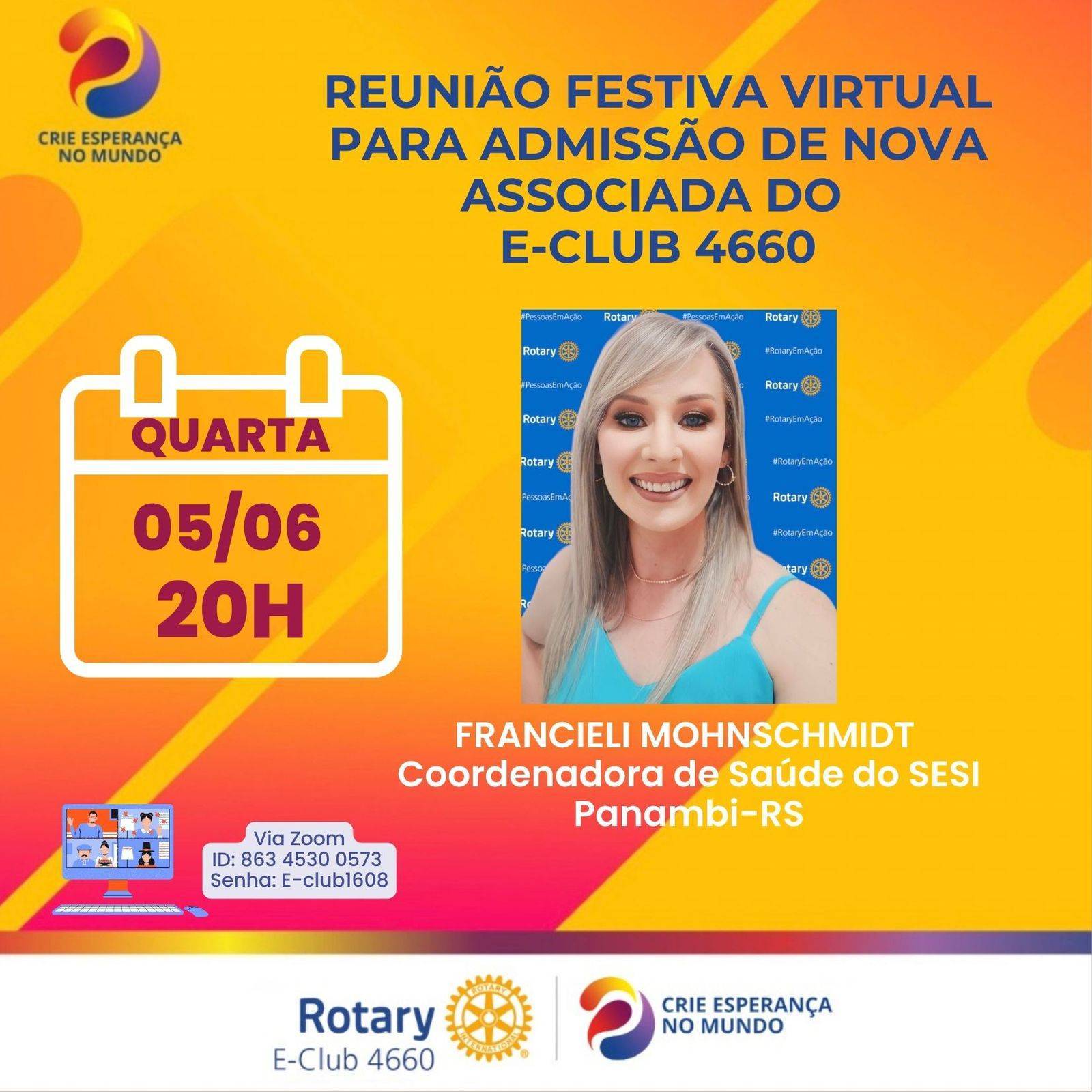 Tópico: REUNIÃO FESTIVA VIRTUAL PARA ADMISSÃO DE ASSOCIADA DO ROTARY E-CLUB 4660
