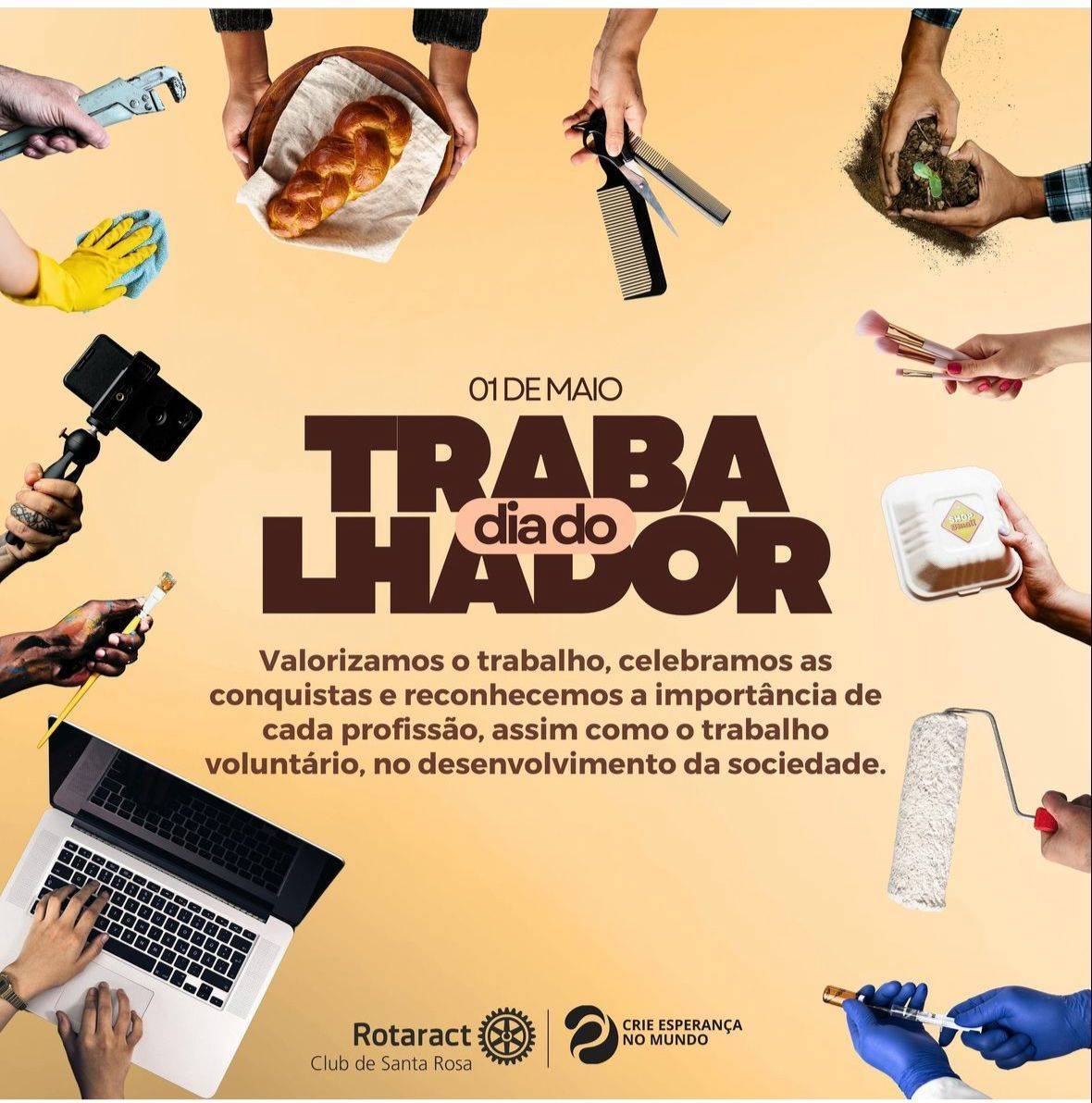 Em homenagem ao Dia do Trabalho, celebramos a dedicação e o esforço de todos aqueles que contribuem para fazer do mundo um lugar melhor, através das suas profissões e também os que atuam com trabalho voluntário. Parabéns a todos os trabalhadores pelo seu trabalho diário! 💼👷♀️👨🏭 #DiaDoTrabalhador #rotaract #rotaractsantarosa #distrito4660 #rotaractbrasil