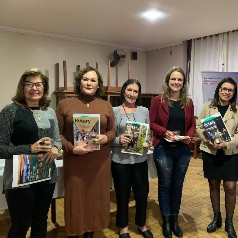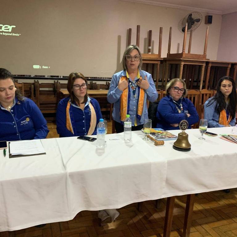 A companheira Maria Lúcia destacou a importância da Fundação Rotária e a aprovação de um projeto voltado às vítimas da enchente e a presidente Edinara destacou a importância de ser uma rotariana ativa para o crescimento pessoal. Depois as companheiras apresentaram-se, dizendo nome, profissão, tempo de Rotary e madrinas.