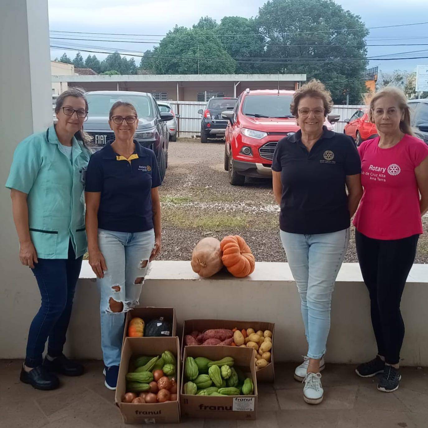 As companheiras Vera Sampaio, Tê Cossetin e Mara Barcellos entregaram legumes e verduras para o Hospital São Vicente de Paulo doadas pelas rotarianas do RC Ana Terra.
