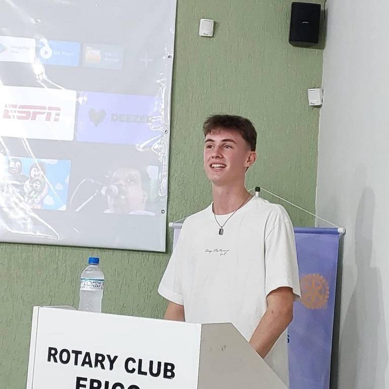 O intercambista alemão Leif Benjamin Einerder-interactiano também participou da reunião contando seus aprendizados e experiências no Brasil.