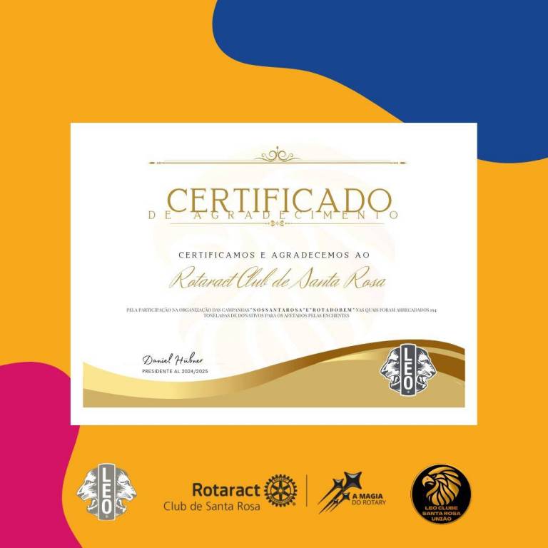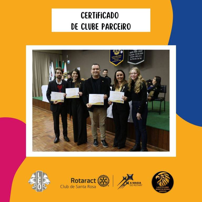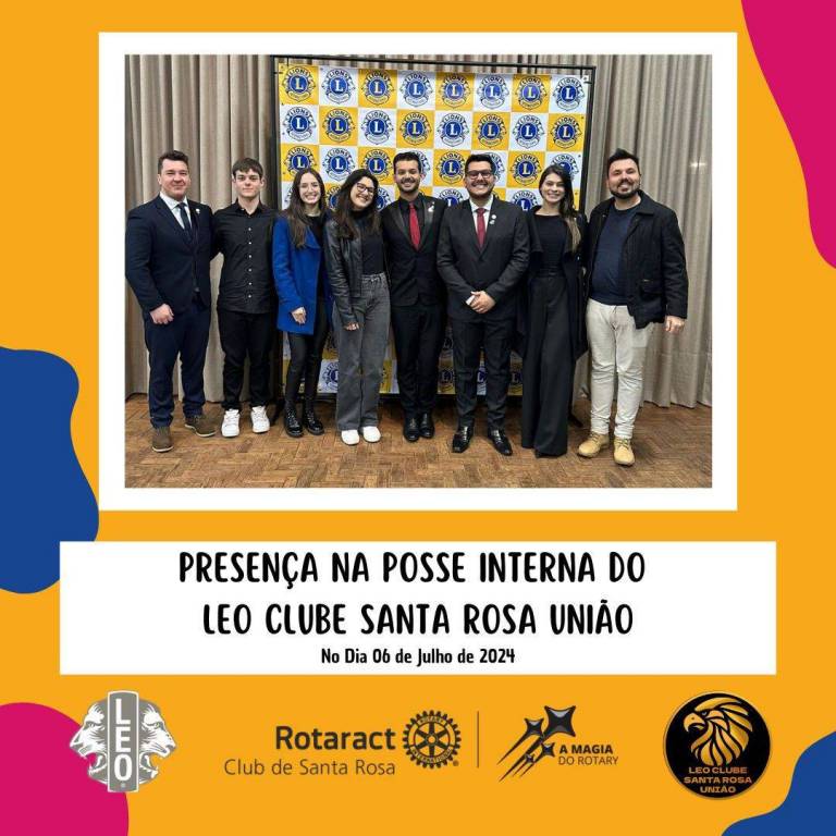 No dia de 06 de julho, o Rotaract Club esteve presente na posse do Leo Clube União, de Santa Rosa, onde fomos presenteados com o Certificado de Clube Parceiro!