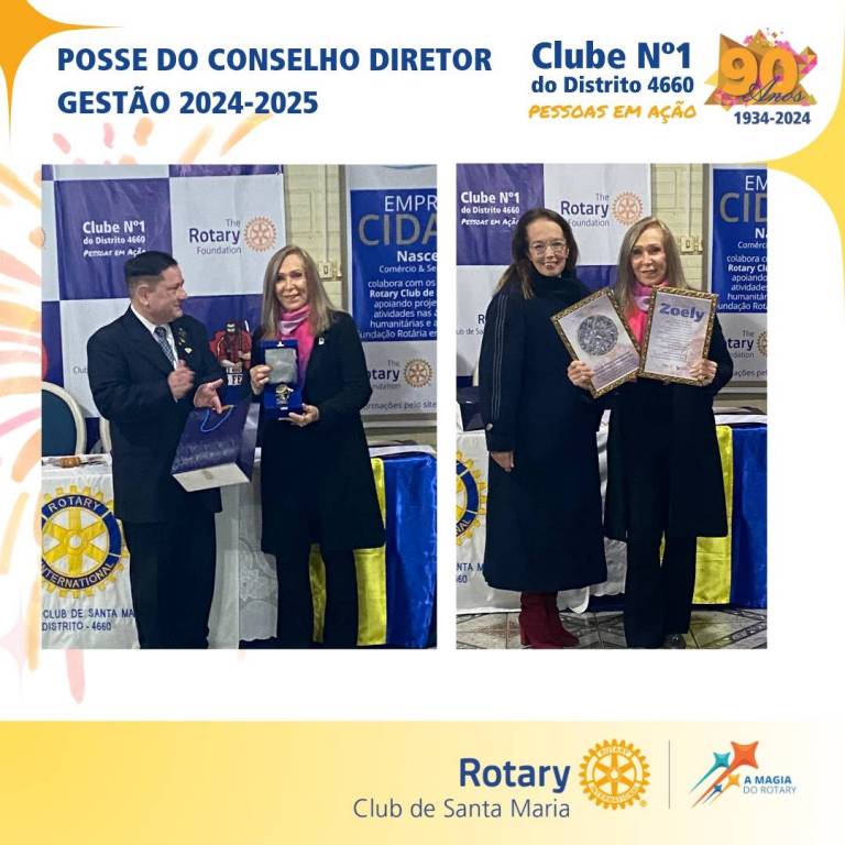 Na quinta-feira, dia 04/07 tivemos a Posse do Conselho Diretor, onde a Comp. Zoely Zanki Cordenosnsi - presidente 2023-2024 passou o malhete ao Comp. Carlos Renan do Amaral - presidente 2024-205, dentre as homenagens, destacamos e agradecemos a nossa anfitriã Zoely da "Sede do Rotary International" pela sempre calorosa acolhida e pela sua dedicação ao trabalho voluntário e ao companheirismo.