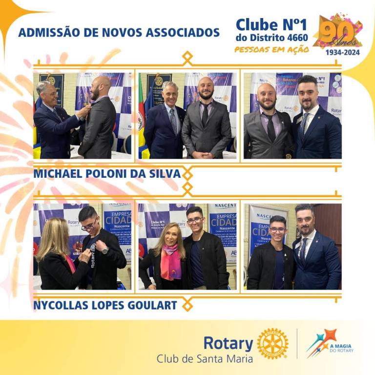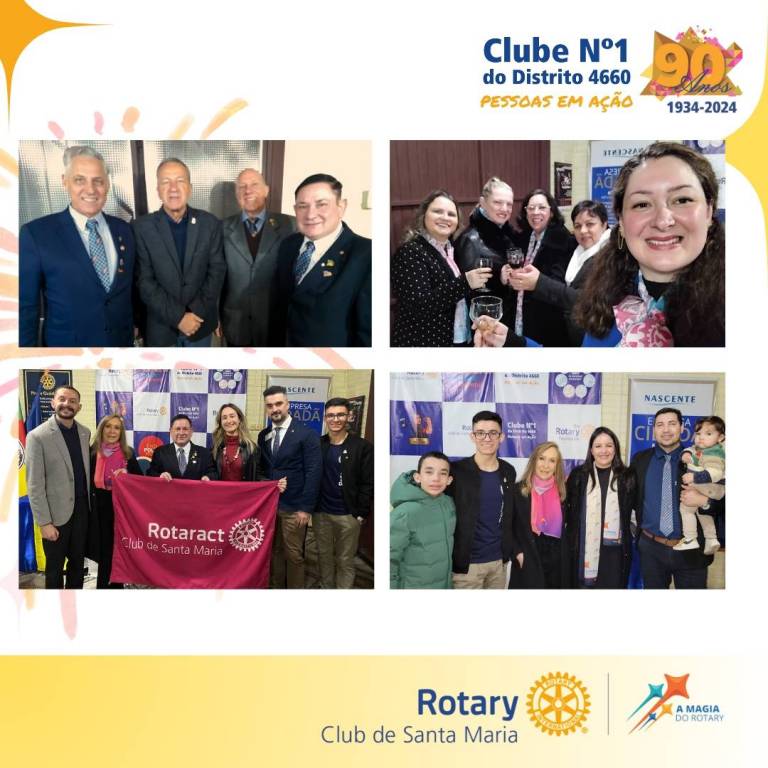 Entre amigos e familiares destacamos as presenças dos companheiros: Pres. Cassiel Moreira e Luíza Souto do Rotaract Club de Santa Maria, Pres. - José Edinei Santos e Elisiane Araujo Lopes do Rotary Club de Tupanciretã Mãe de Deus, Getulio Lemos do RCSM Sul, Reinaldo Guidolin do RCSM Dores, Pres. Santa Catarina Sampaio de Christo e Paulo Christo do RCSM Nordeste e representando a Gov. Geisa Rodrigues Vianna, o GA da Área 2 | 2024-25, Claudio Correa Filho do RCSM Locomotiva.